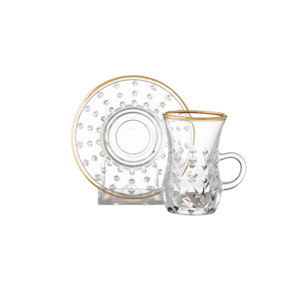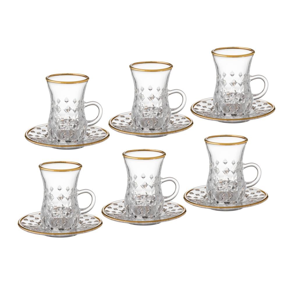 طقم فناجين شاي زجاج محجر ذهبي 12 قطعة