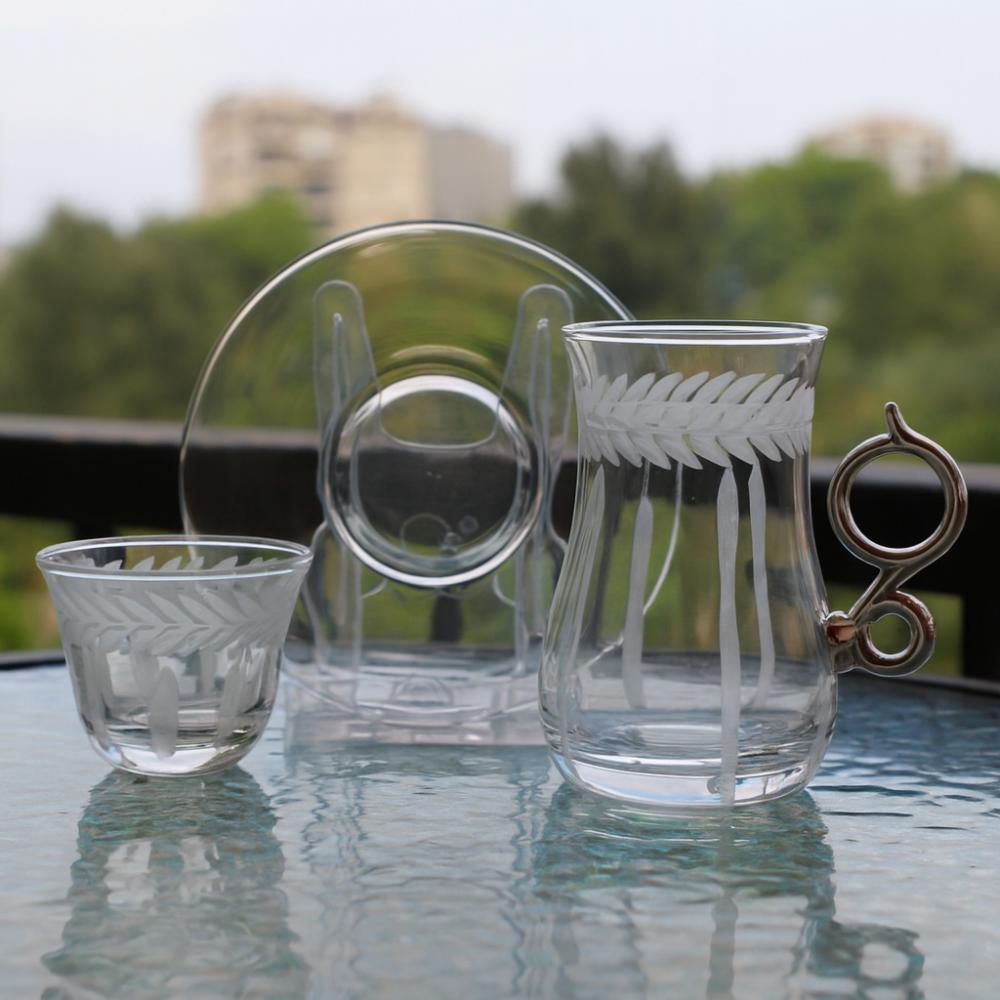 طقم شاي وقهوة زجاج تركي 18 قطعة يد معدن