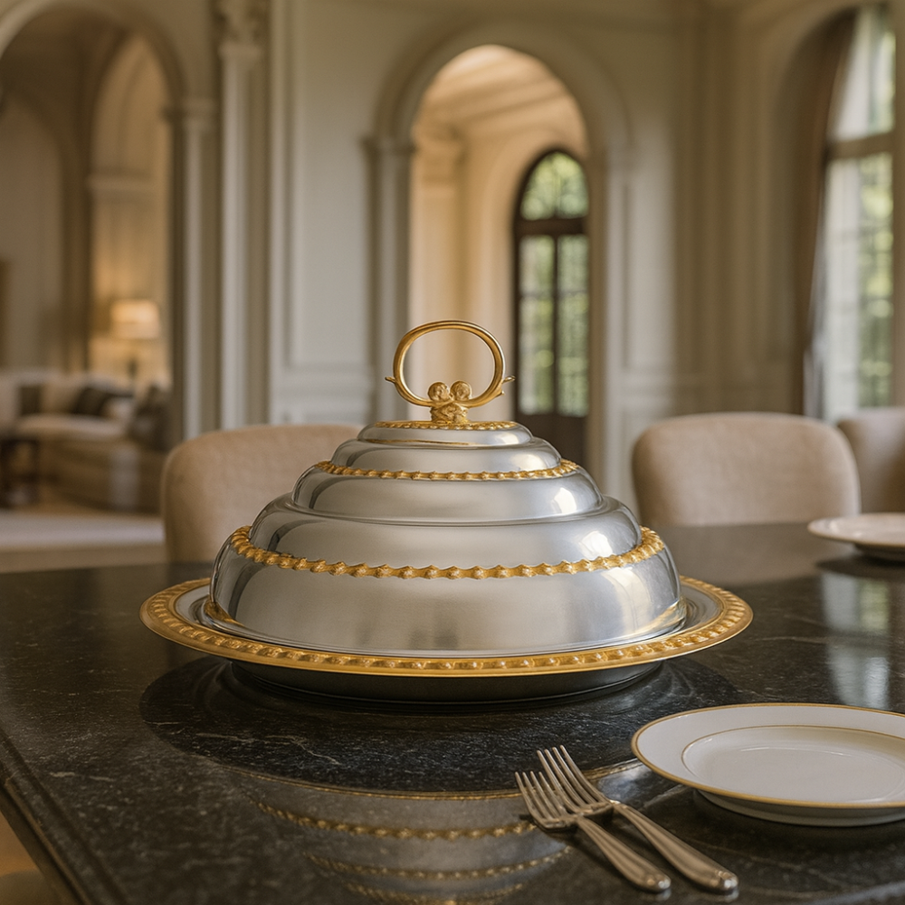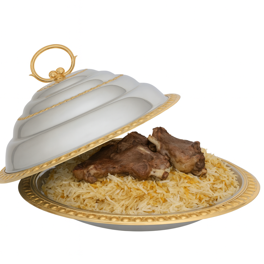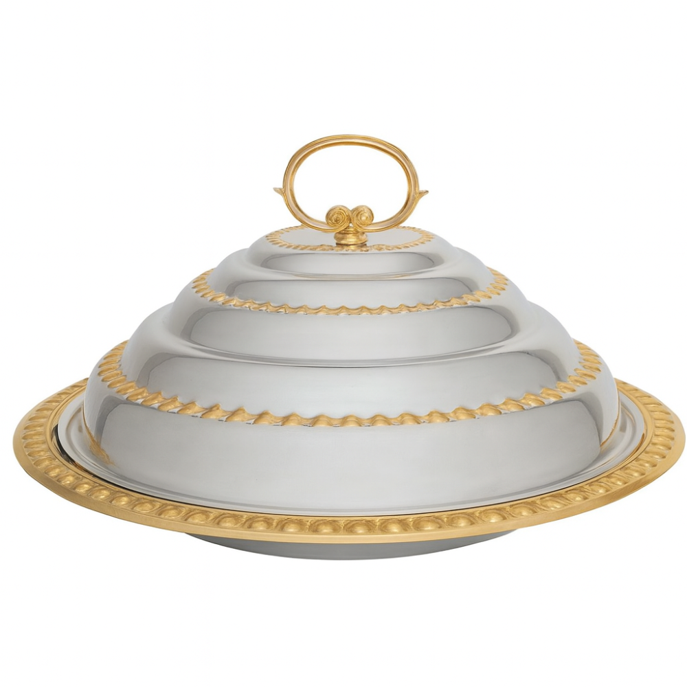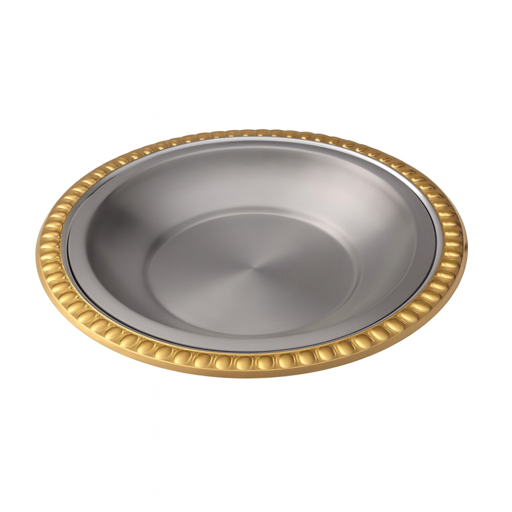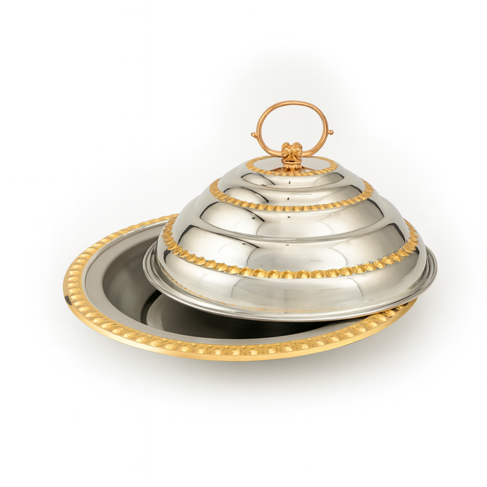 صحن كوزي معدن نيكل وذهبي مدور مقاس 35 سم بغطاء متحرك