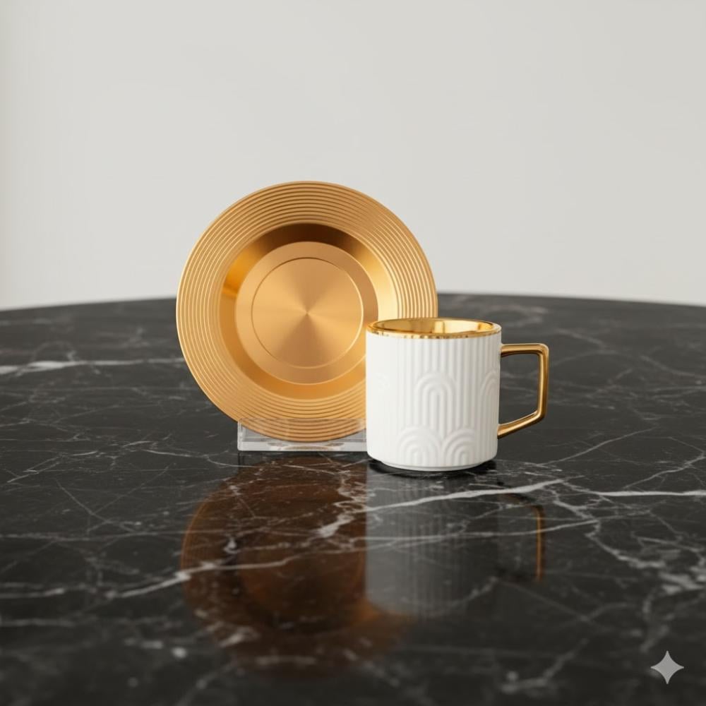 6 صحن فنجان قهوة معدن