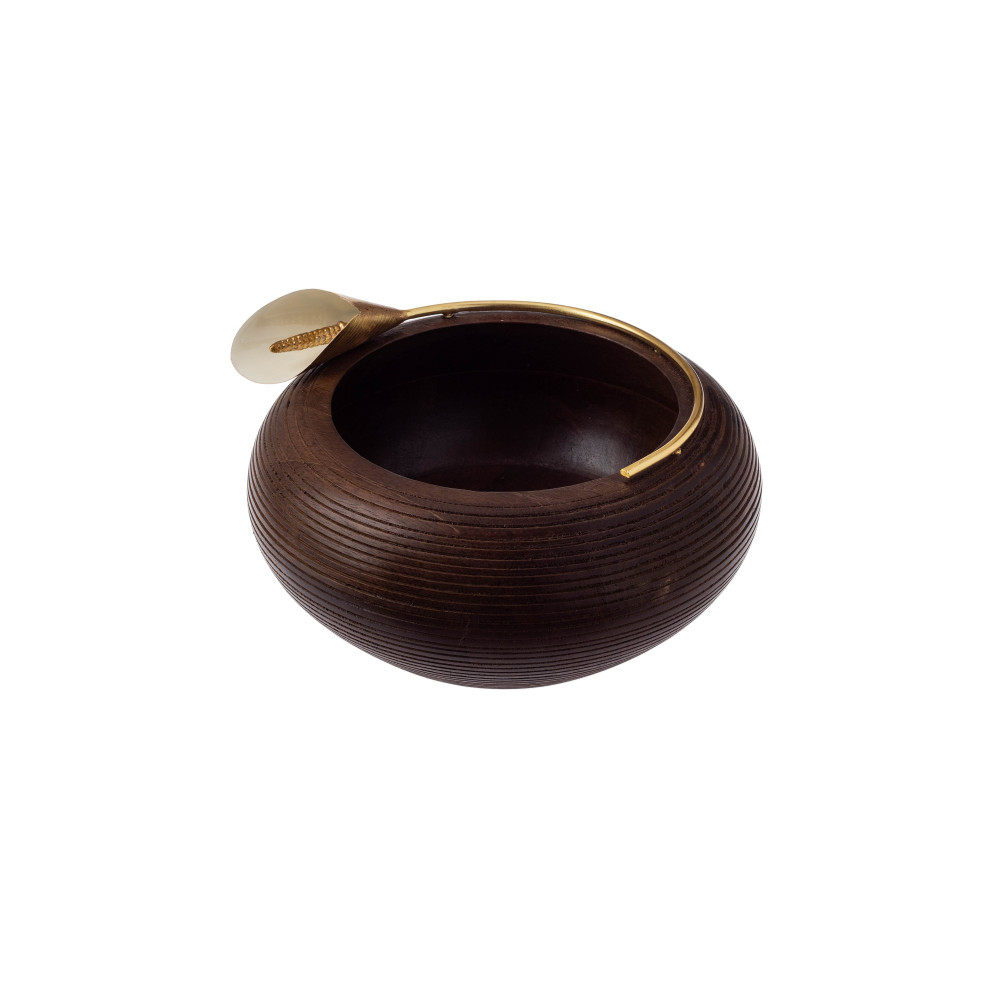 زبدية تقديم خشب هندي بروش وردة ذهبي