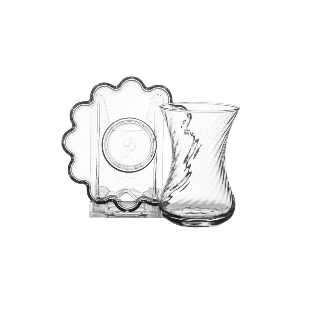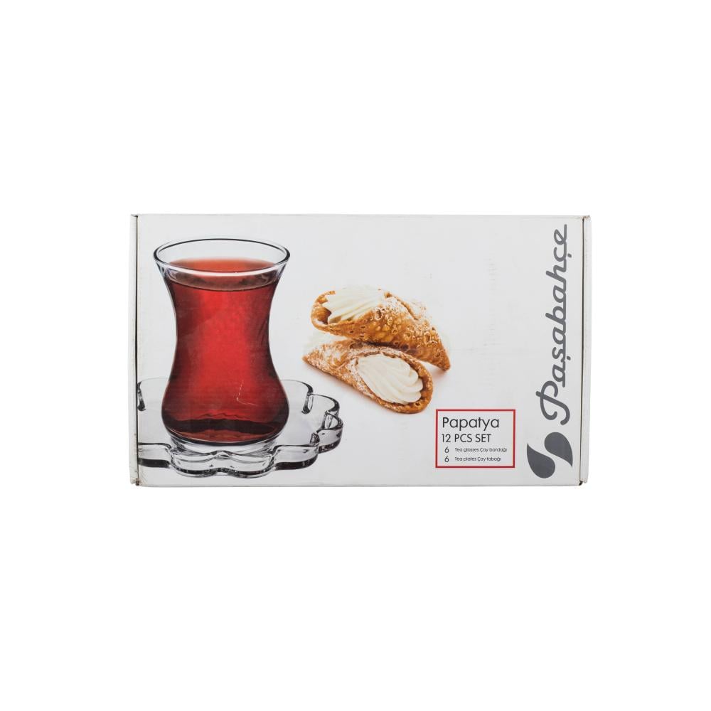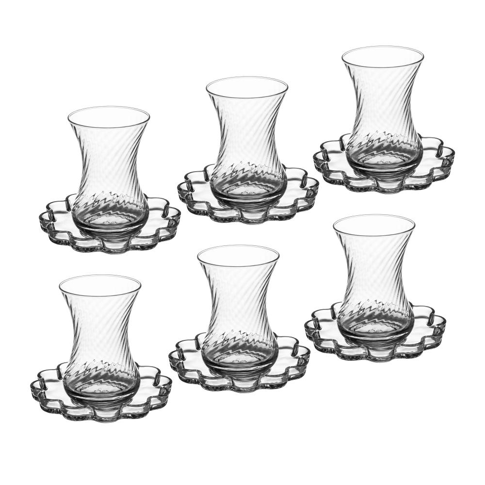 طقم كاسات شاي زجاج سادة 105 مل مع صحن وردة 12 قطعة 6 اشخاص كاسات شاي تركي سادة pasabahce