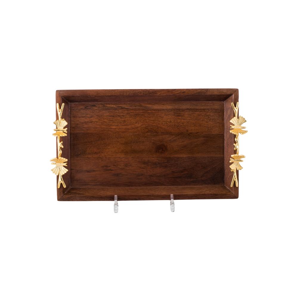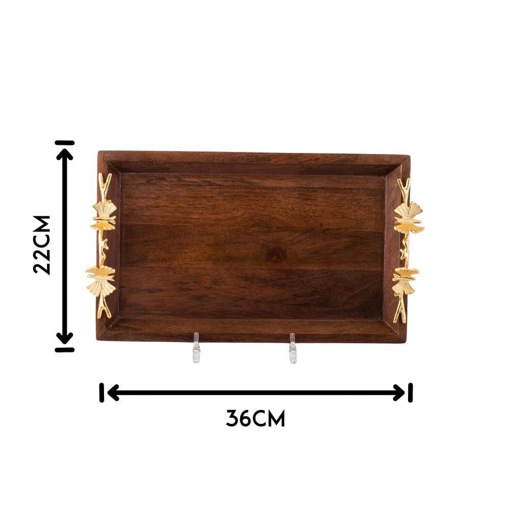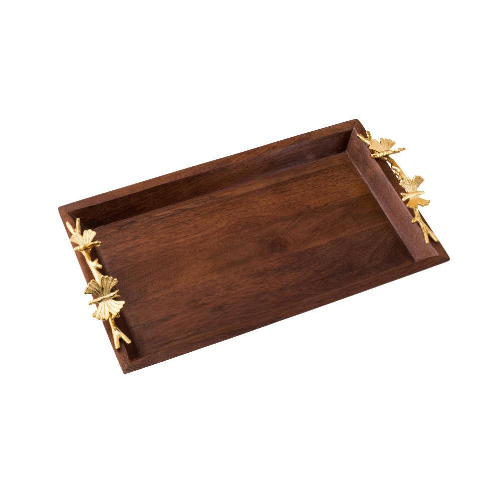 صينية تقديم خشب هندي بحامل ديكور فراشات ذهبي