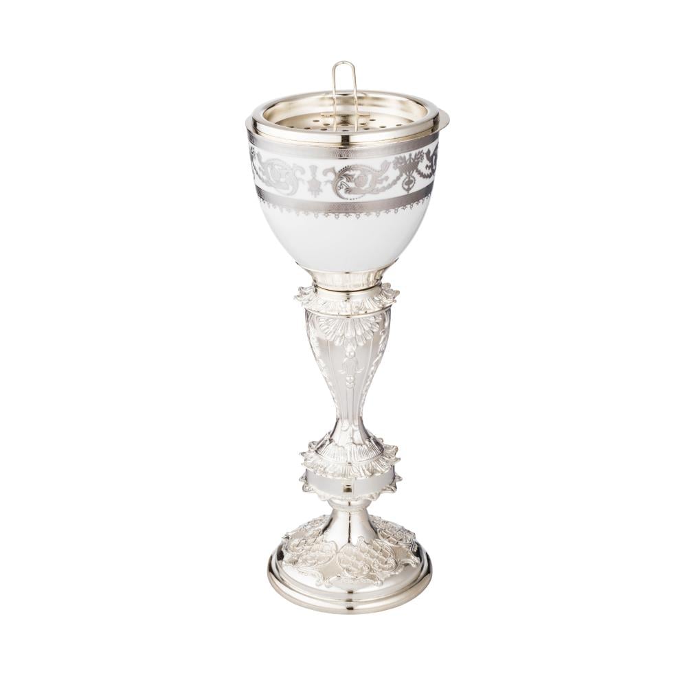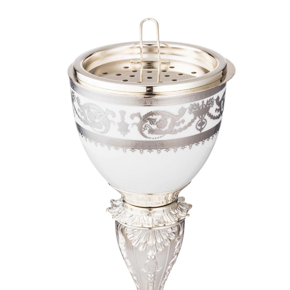 مبخرةا لقمة بورسلان ورد بقاعدة معدن فضي مقاس ارتفاع 34 سم