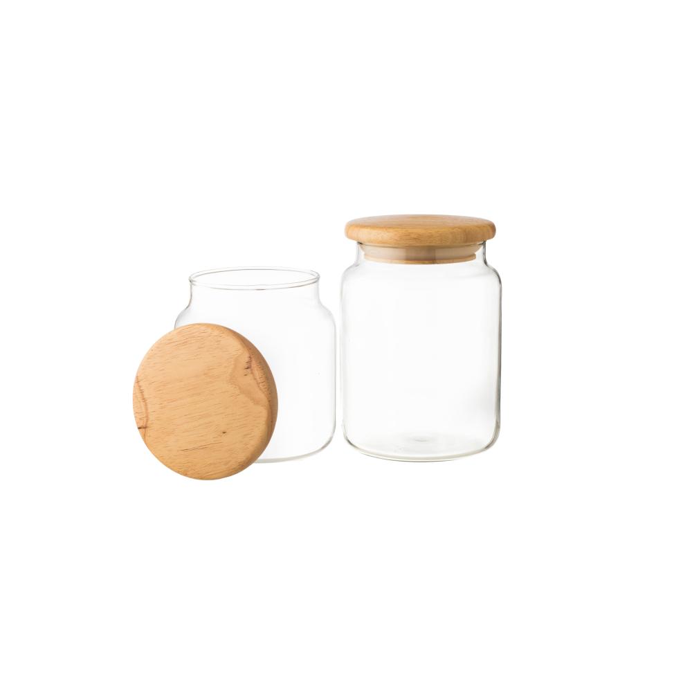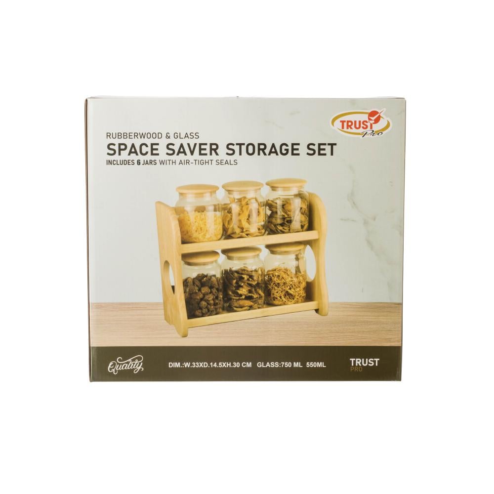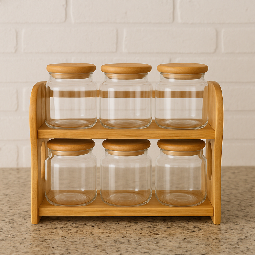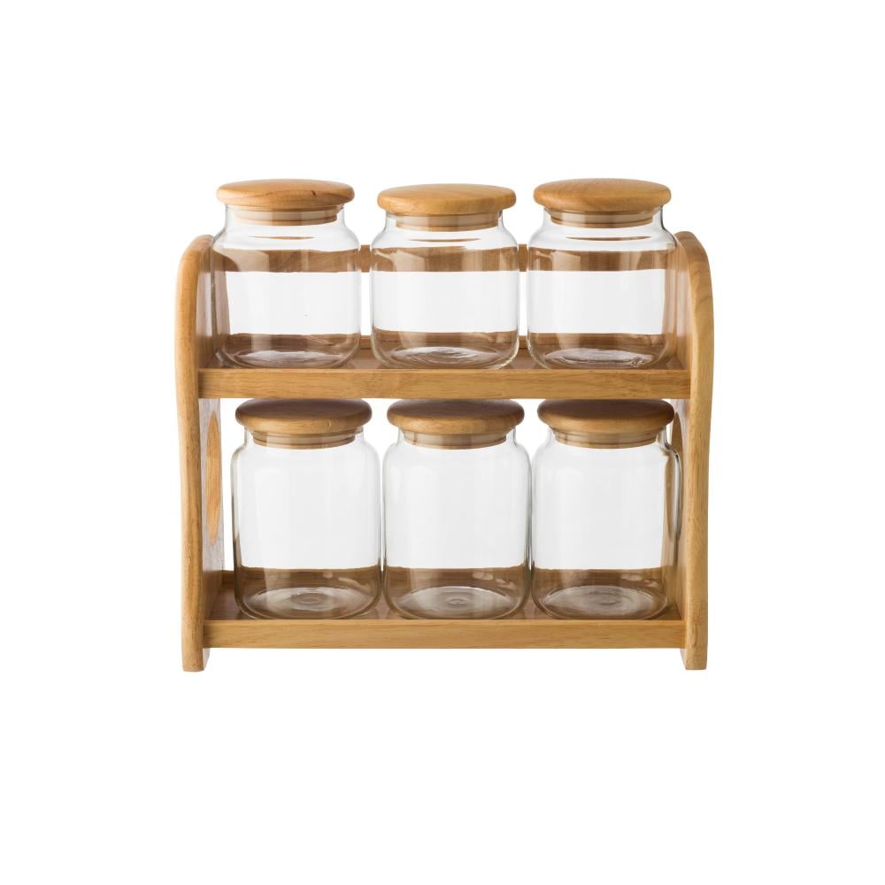طقم علب بهارات زجاج مع استاند خشب 6 قطعة 2 دور