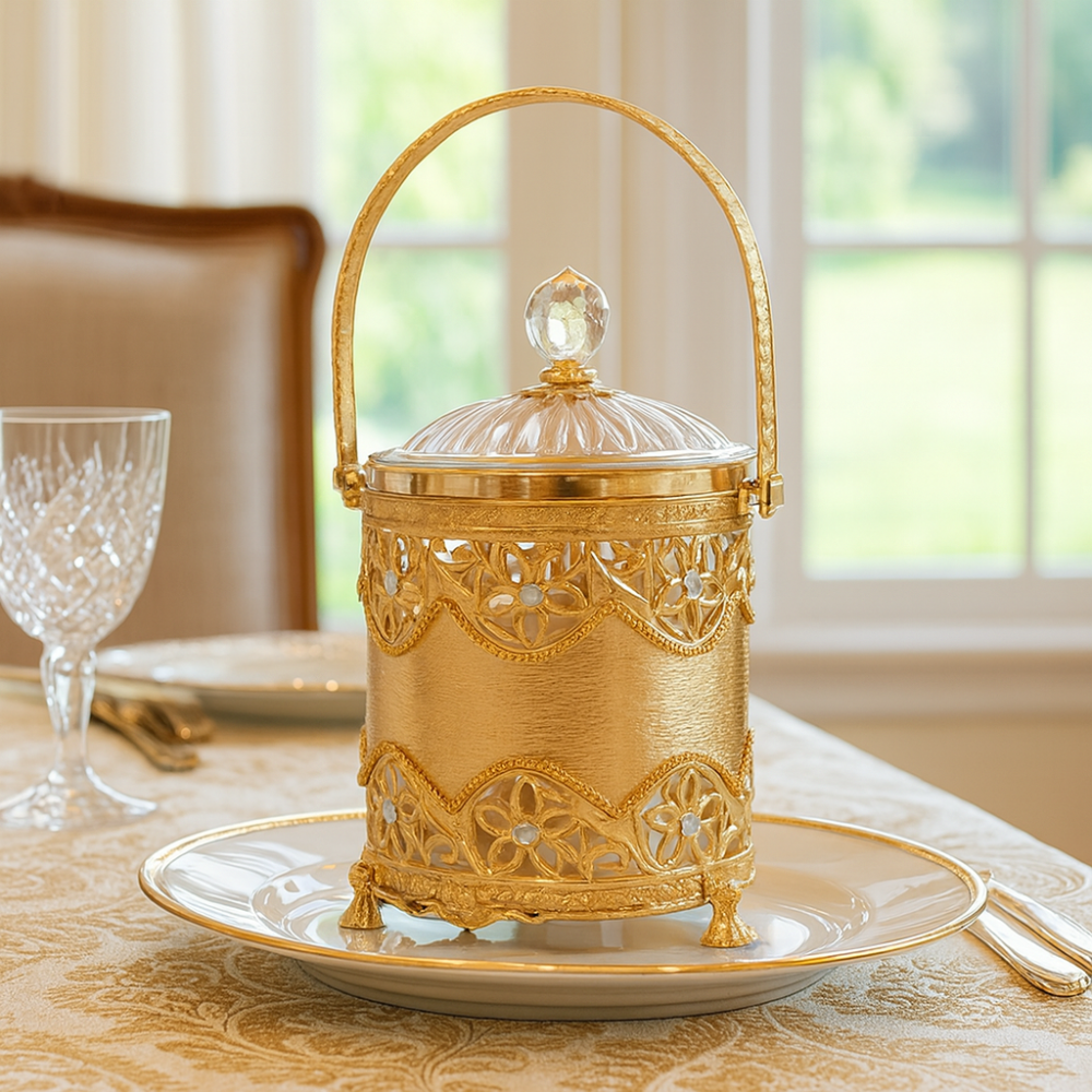 سطل ثلج ملبس معدنمن الداخل بلاستيك لحفظ الموادارتفاع 23سمعمق 17 سمملاحظة ( غير قابل للاستخدام في غسالة الصحونو المايكرويف )