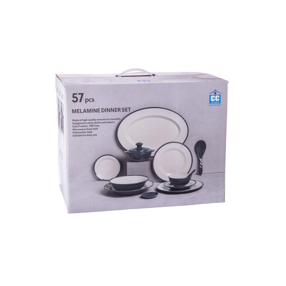 طقم عشاء ميلامين رمادي 57 قطعة 6 اشخاص