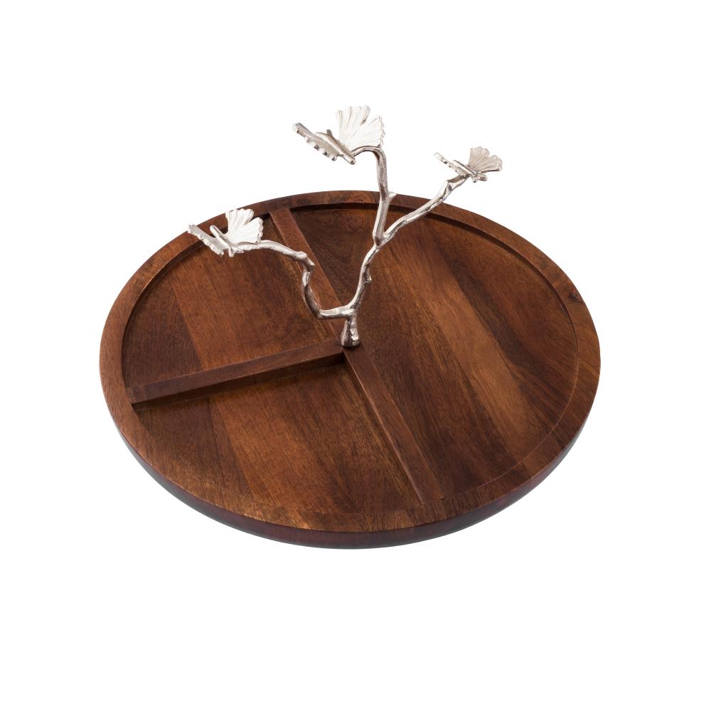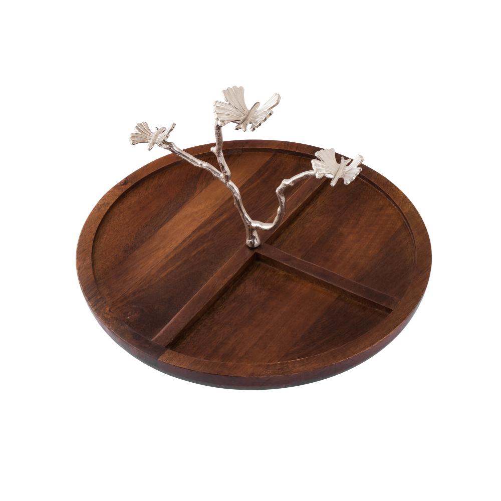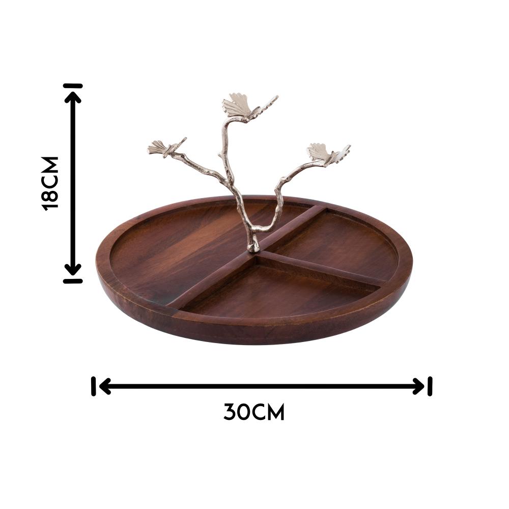 صحن مكسرات مقسم خشب هندي بحامل فضي