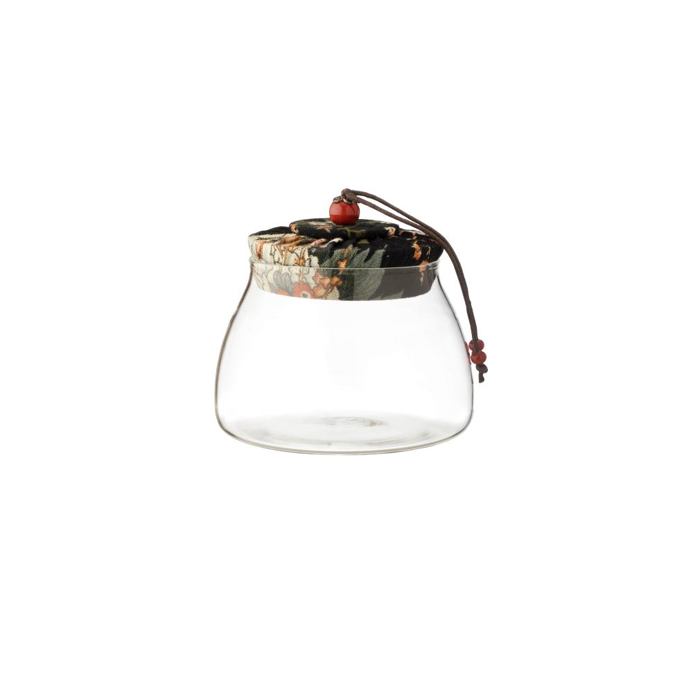 مرطبان زجاج شفاف للحلا والمكسرات بغطاء مغلف بالقماش 9.5 سم