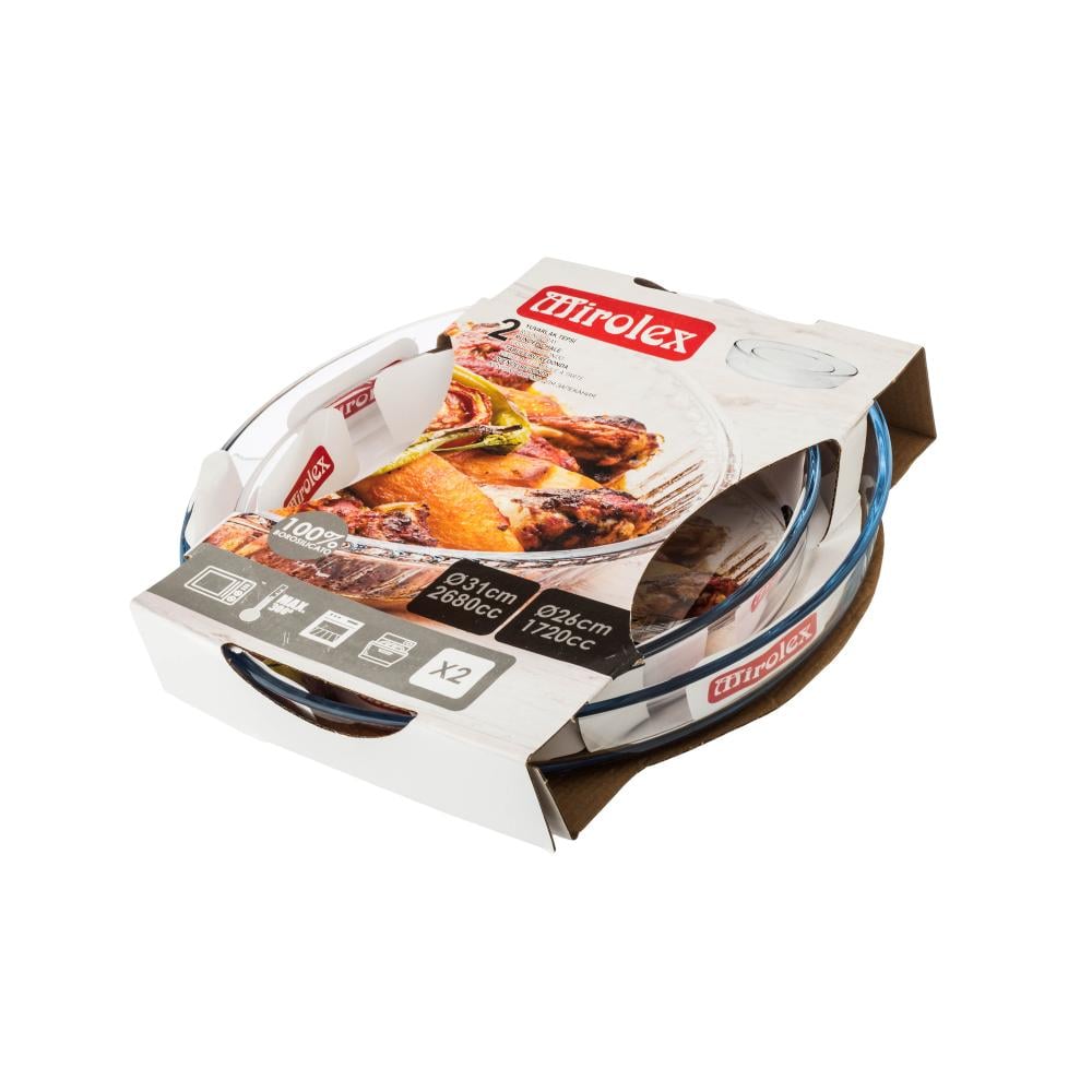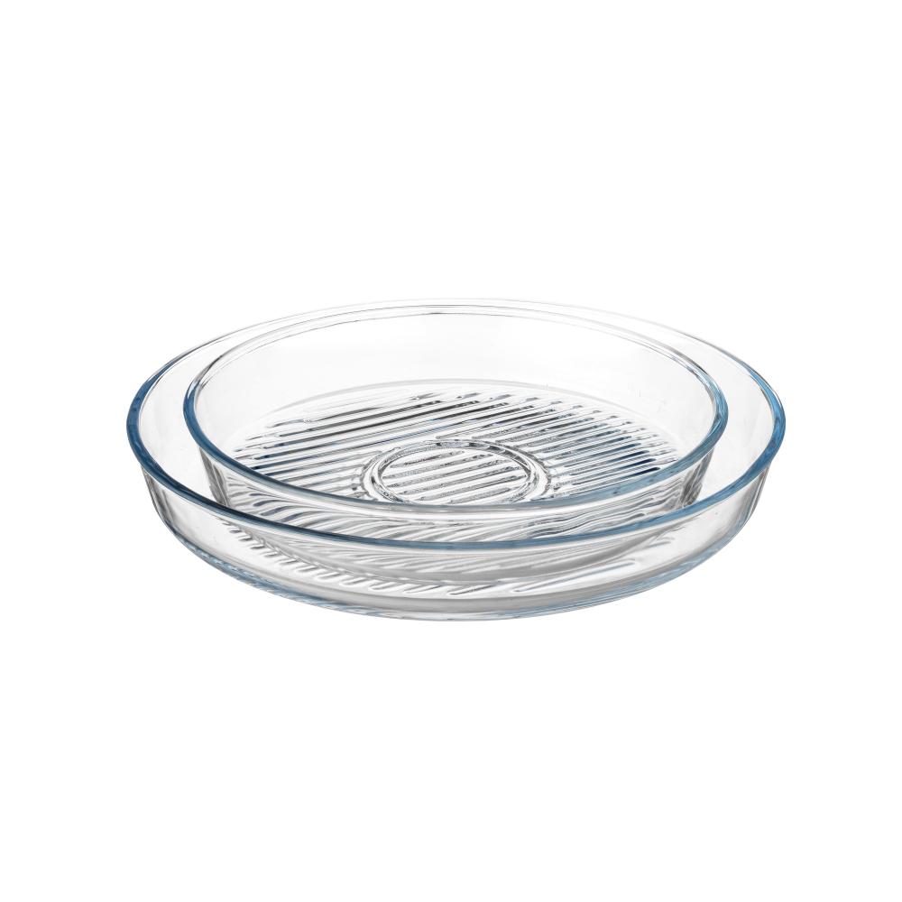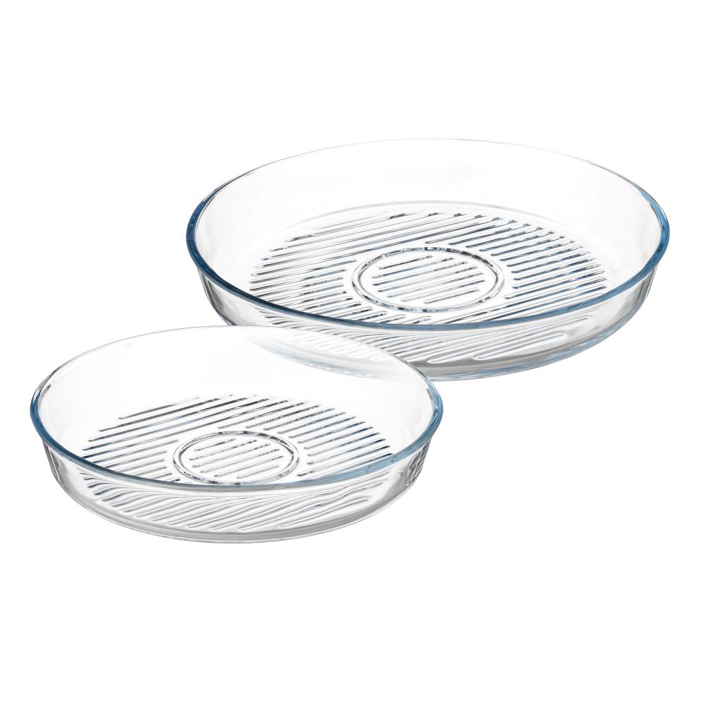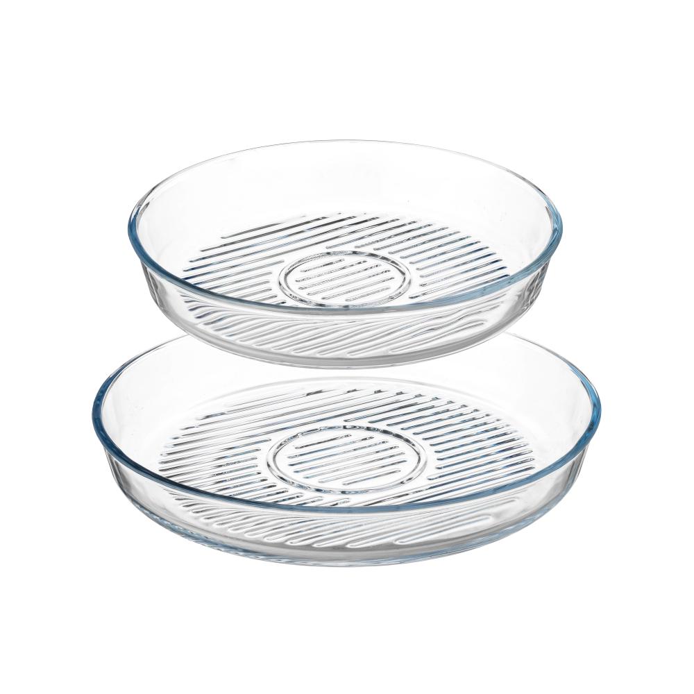 صواني فرن زجاج دائري ارضية مخطط 2 قطعة