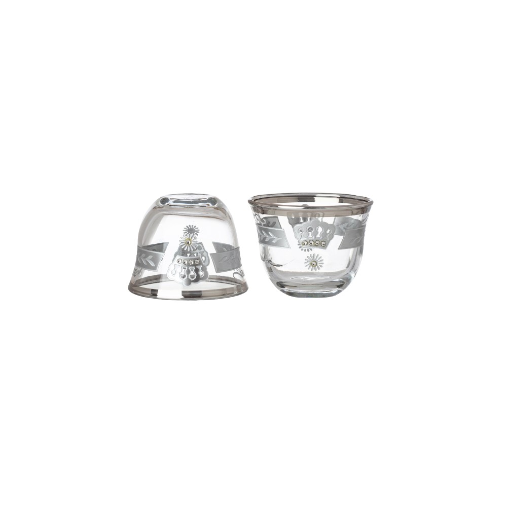 فناجين قهوة سعودي كريستال مزخرف فضي 12 قطعة