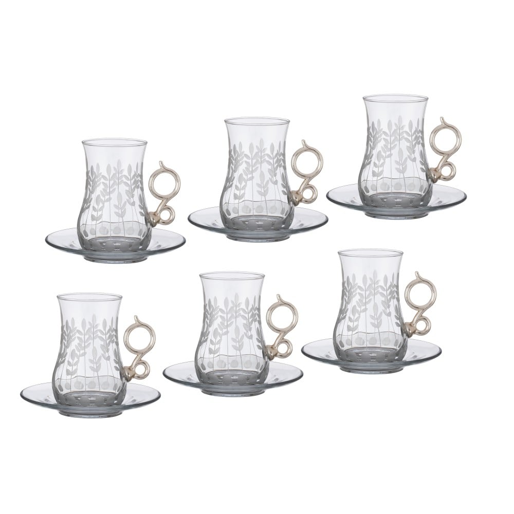 طقم فناجين شاي زجاج تركي حفر 12 قطعة