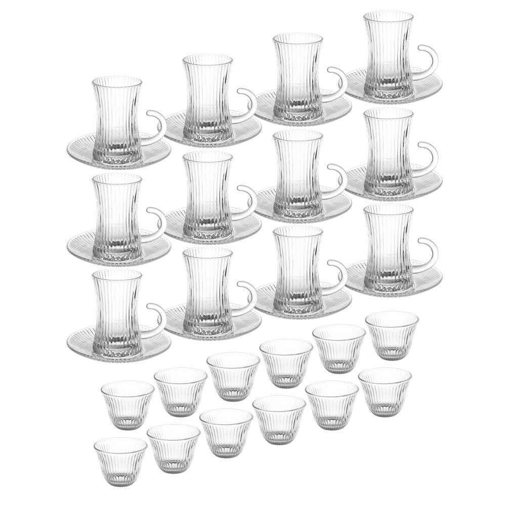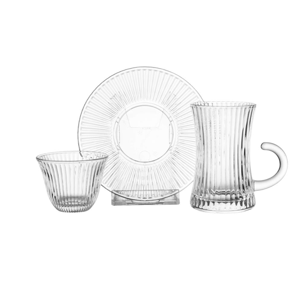 مصنوع من زجاج فاخر عالي الشفافية يُبرز جمال المشروبات الساخنة ويضفي لمعة فخمة على كل جلسة ضيافة. تصميمه المخطط الأنيق يضفي طابعًا راقياً يعكس الذوق الرفيع والاهتمام بالتفاصيل.
