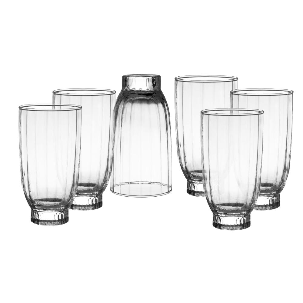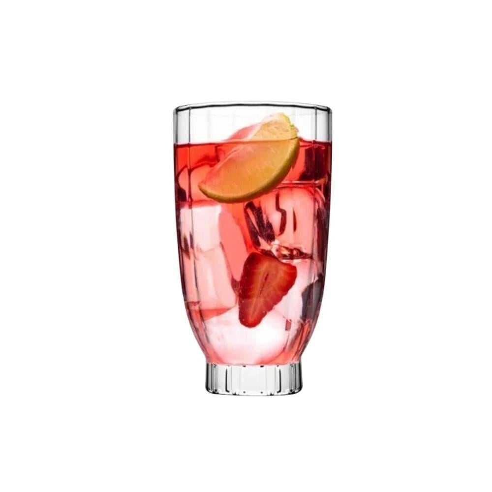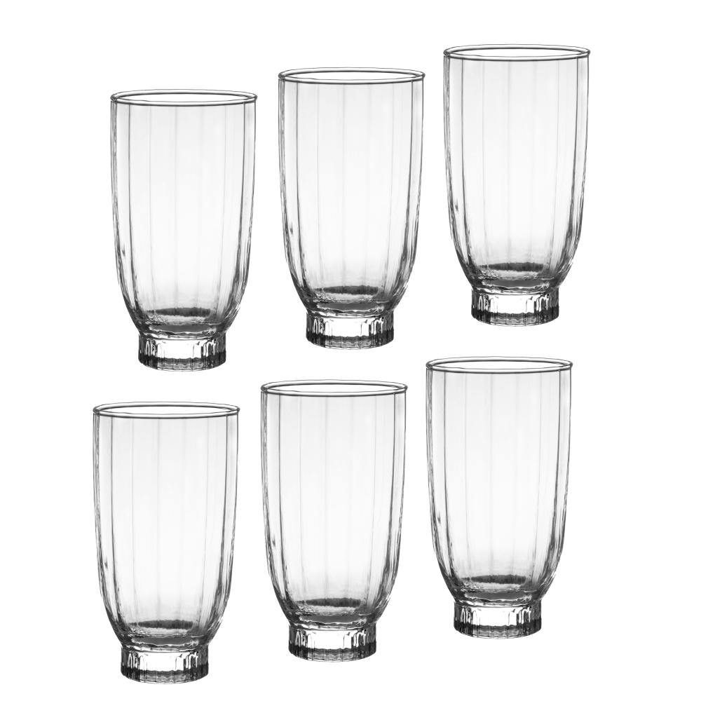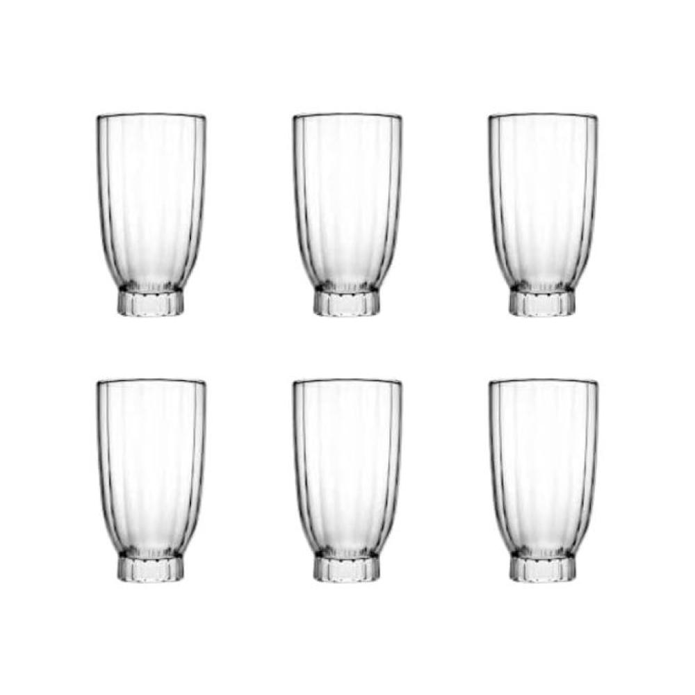 كاسات عصير امور زجاج شفاف مخطط 410 مل 6 قطعة باشاباشي