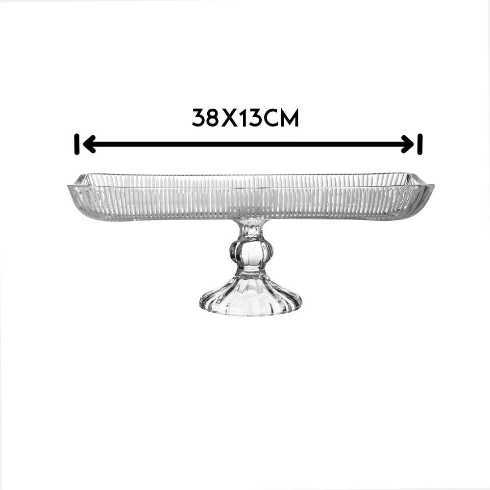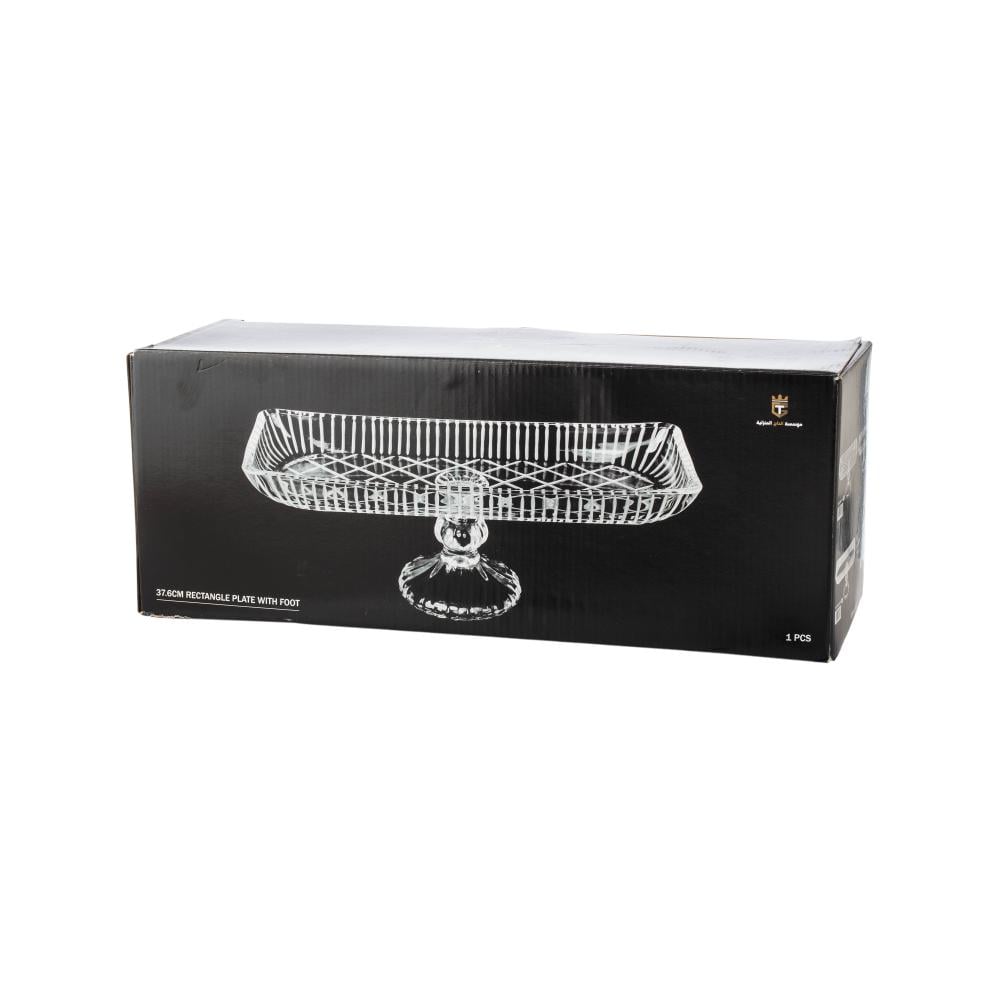 صحن تقديم زجاج مخطط مستطيل بقاعدة مقاس 38*14 سم