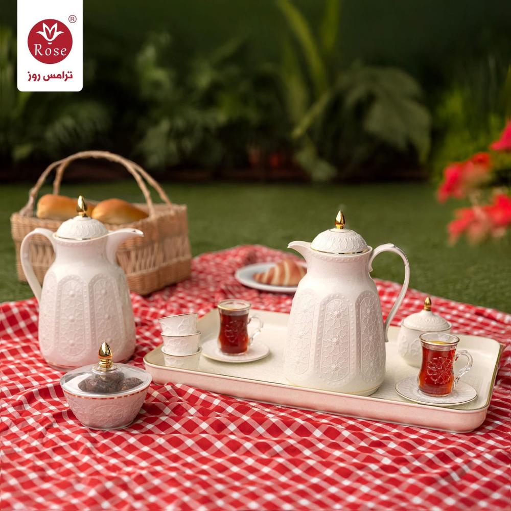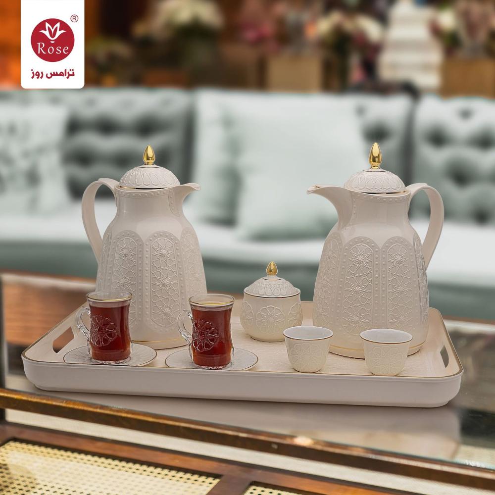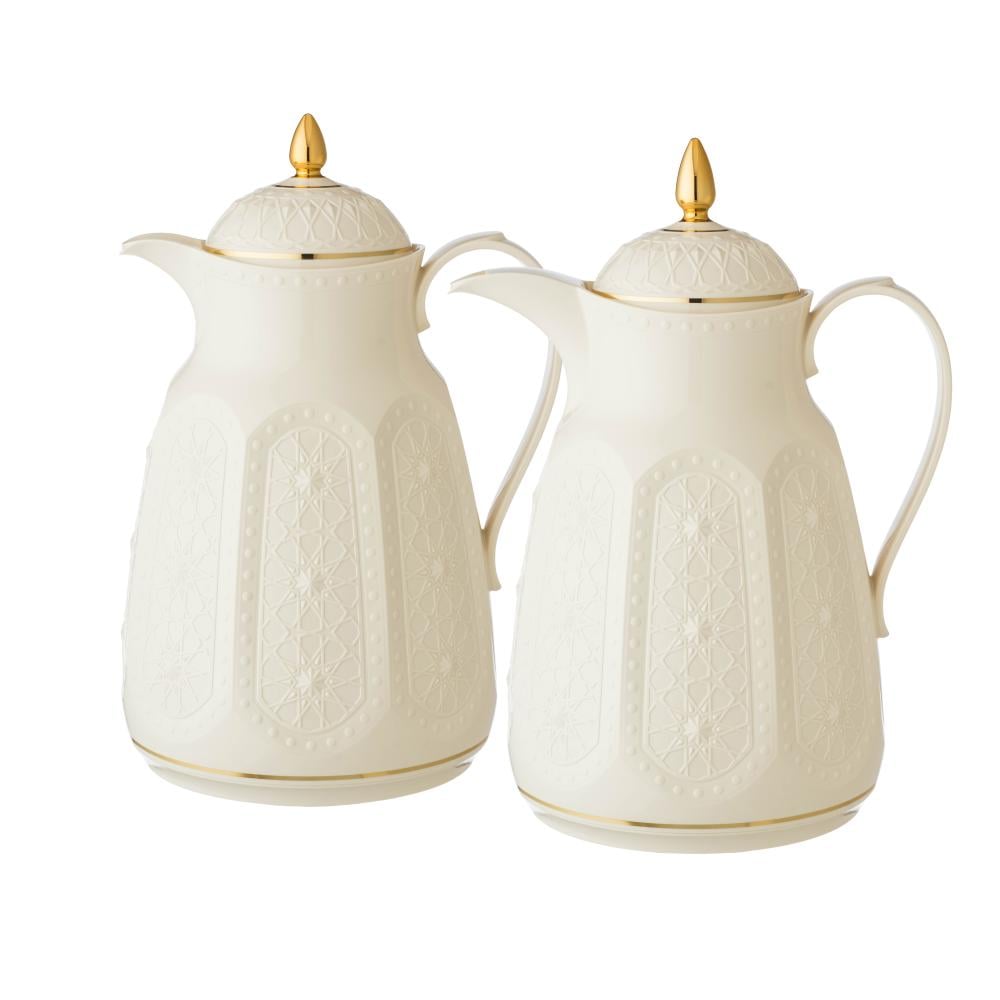 طقم ترامس روز كريمي مزخرف 2 قطعة 1 لتر