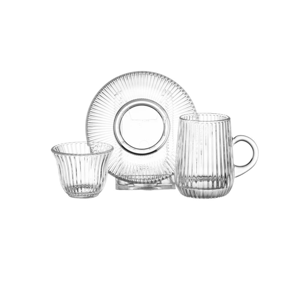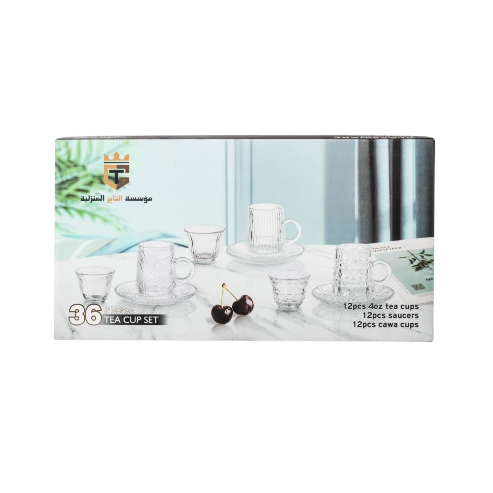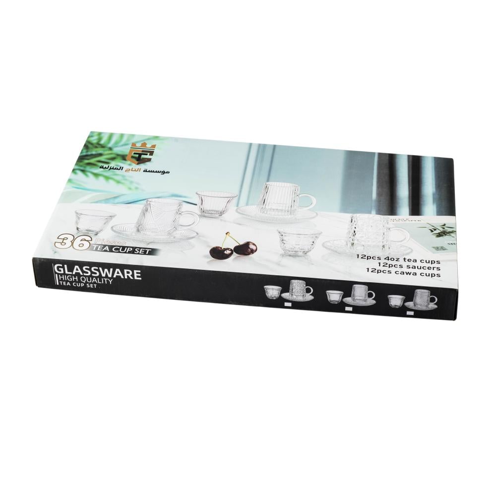 طقم شاي وقهوة 36 قطعة زجاج مخطط