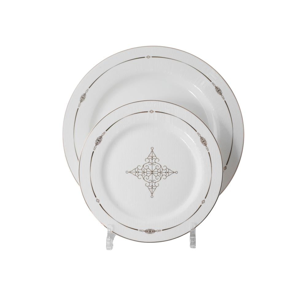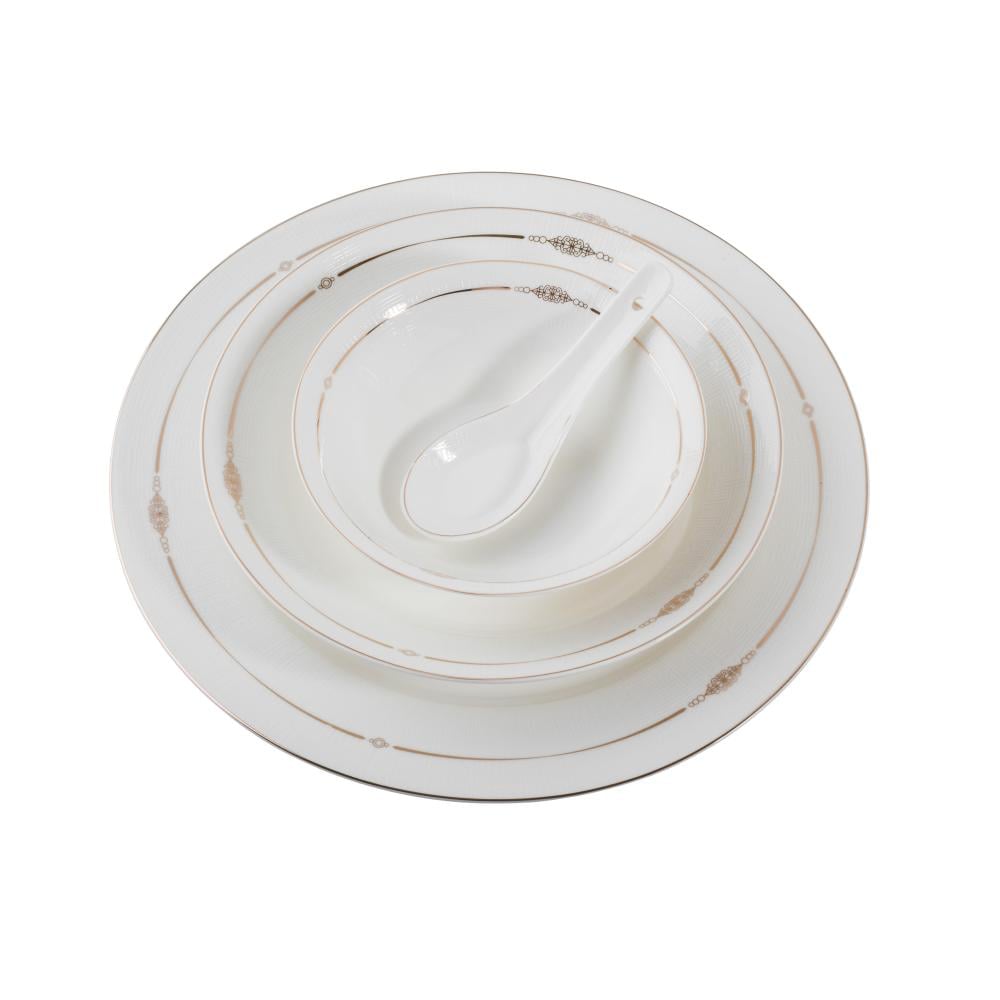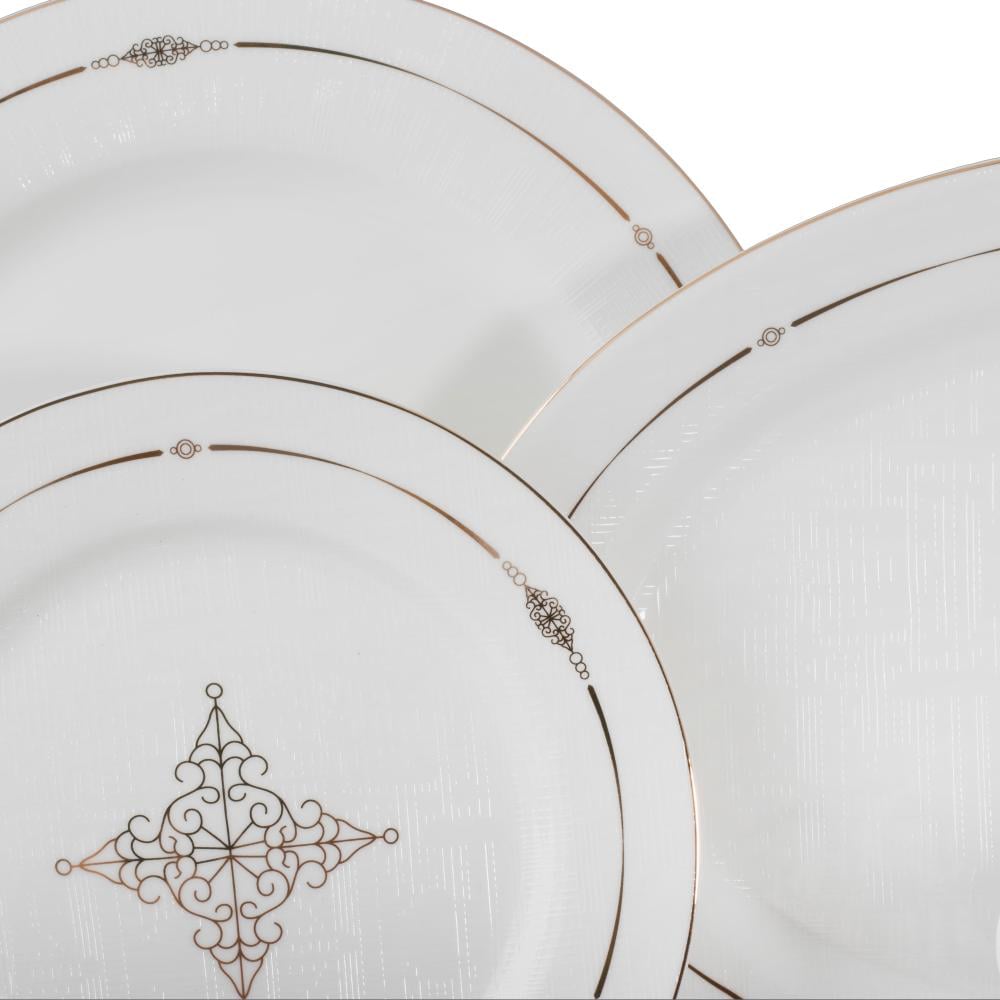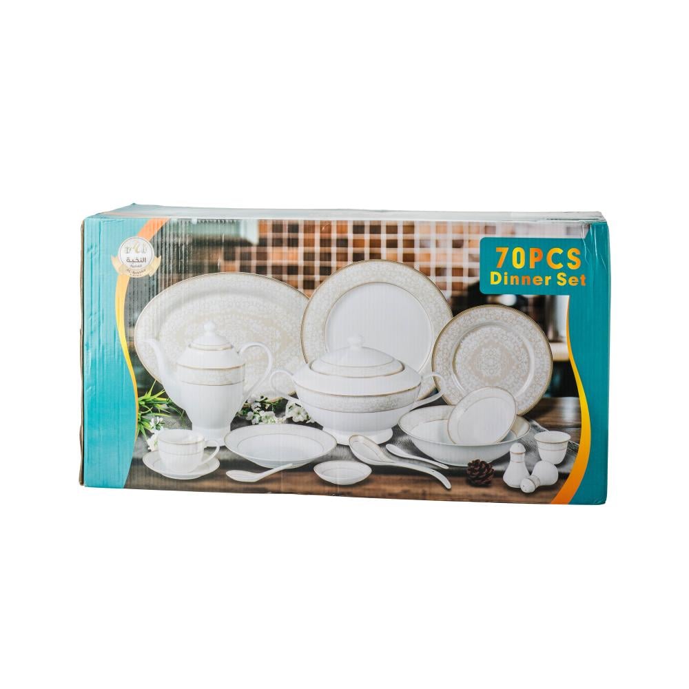 طقم عشاء بورسلان ابيض وذهبي مدور مزخرف 70 قطعة 6 اشخاص