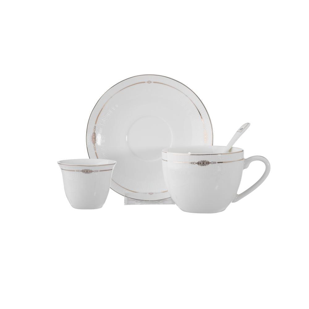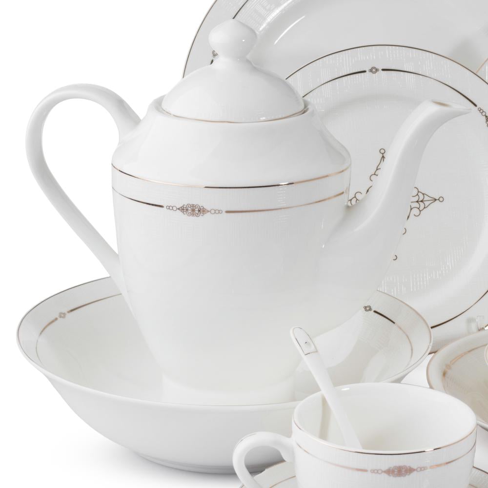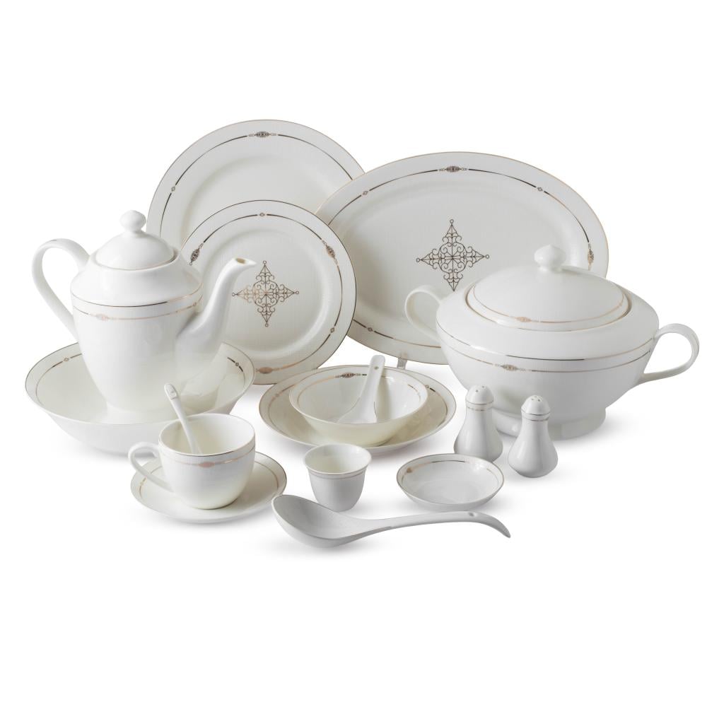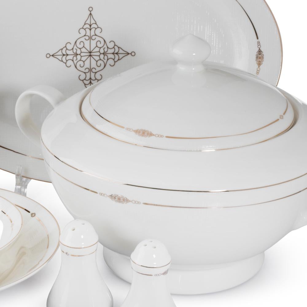 طقم عشاء بورسلان ابيض وذهبي مدور مزخرف 70 قطعة 6 اشخاص