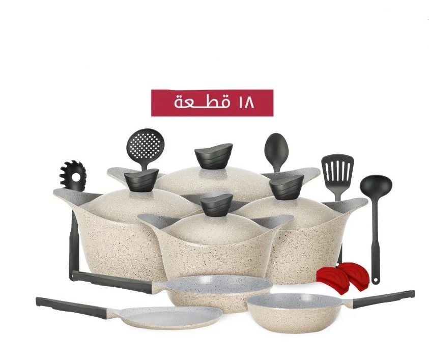 طقم قدور جرانيت لاهويا 18 قطعة كريمي