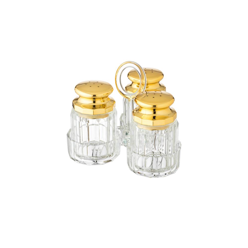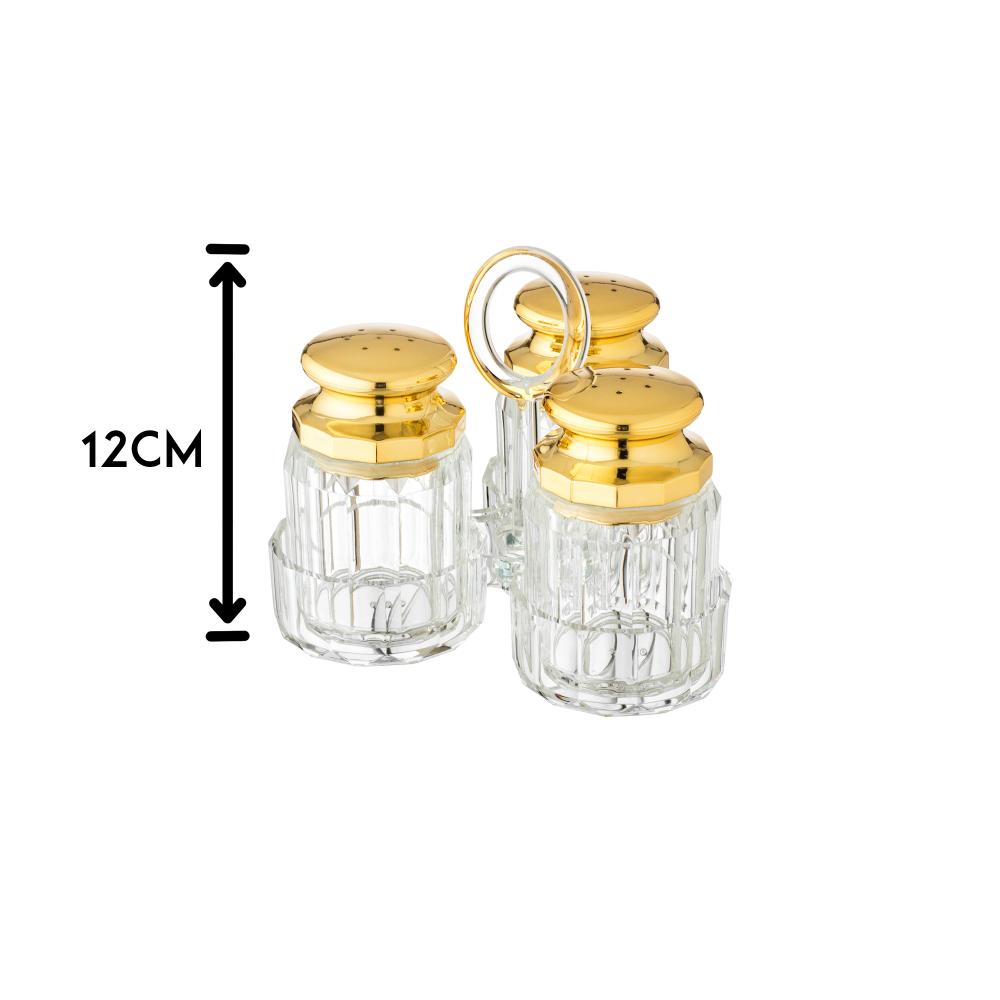 طقم 3 ملاحات اكريلك مع حامل اكريلك غطاء ذهبي