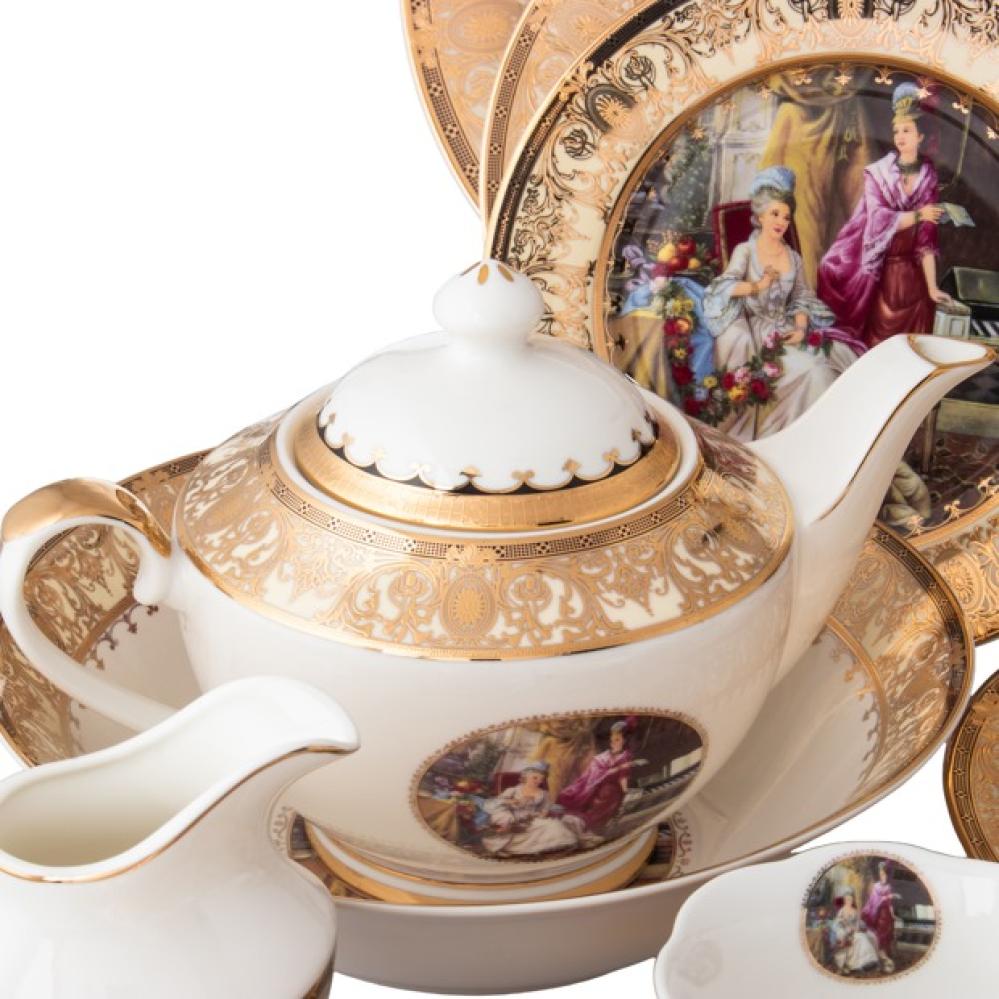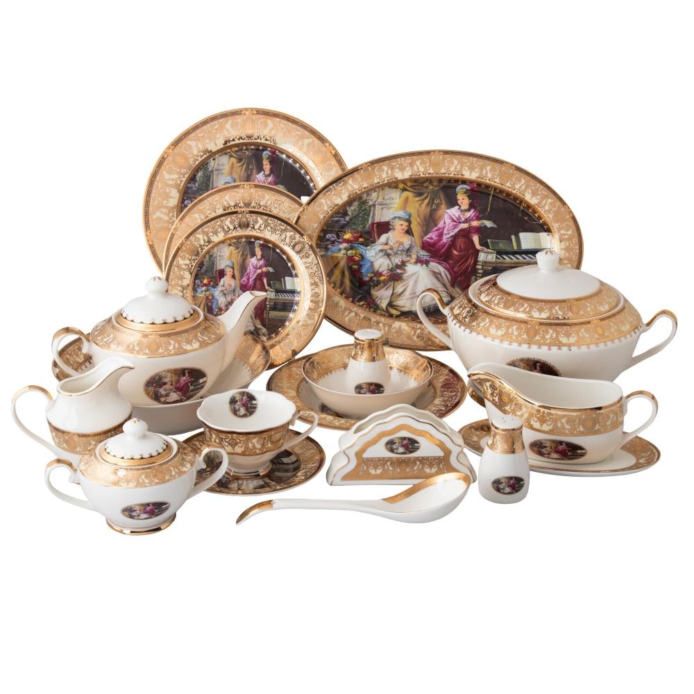 طقم سفرة بورسلان صيني فاخر مذهب برنسيسات 107 قطعة