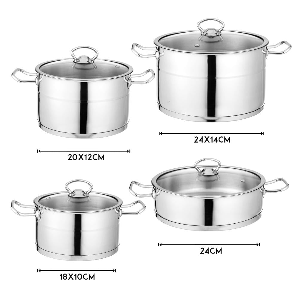 � طقم قدور استيل تركي 18/10 بغطاء زجاج – 8 قطع🌟