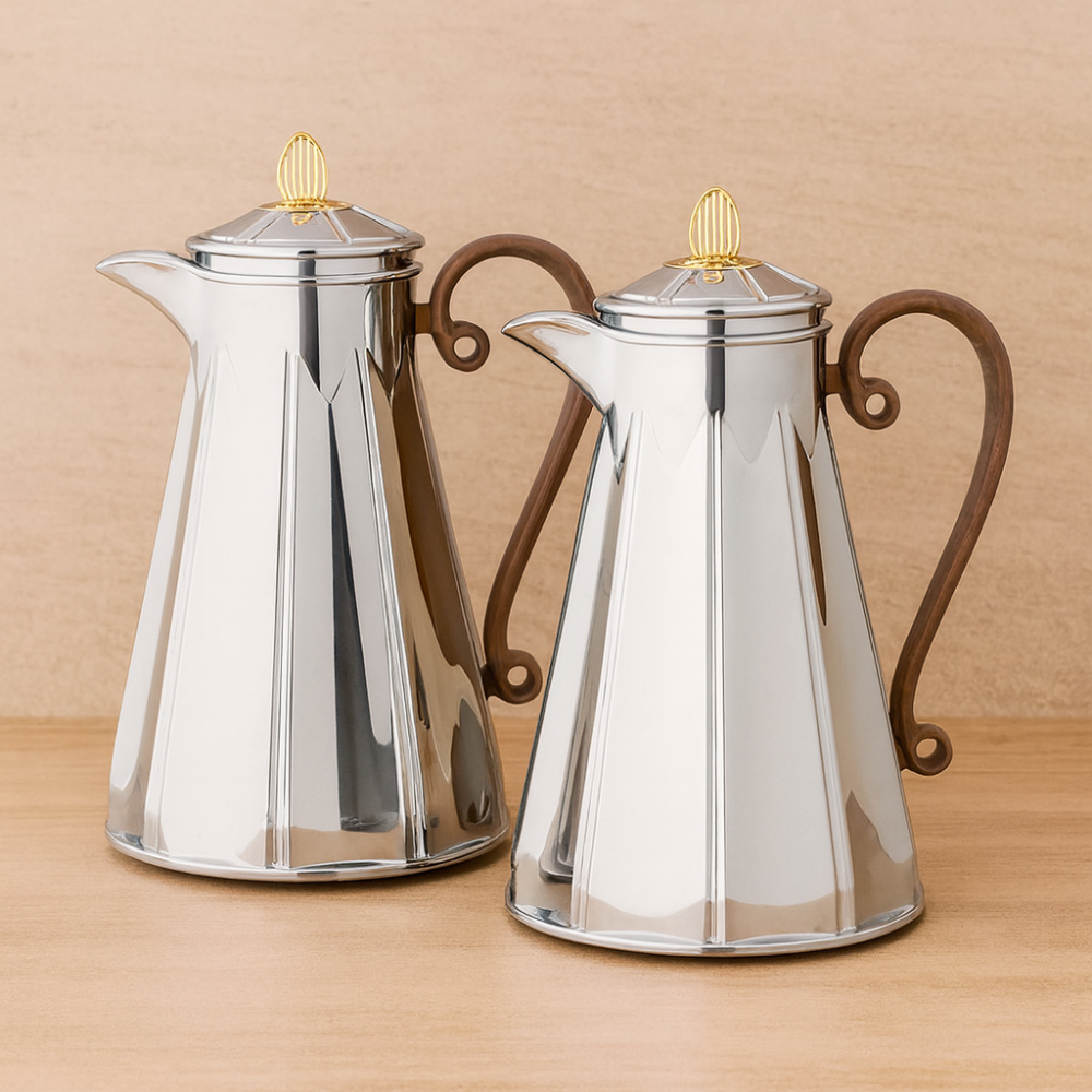 طقم ترامس ألاسكا فضي و ذهبي يد خشبي 2 قطعة