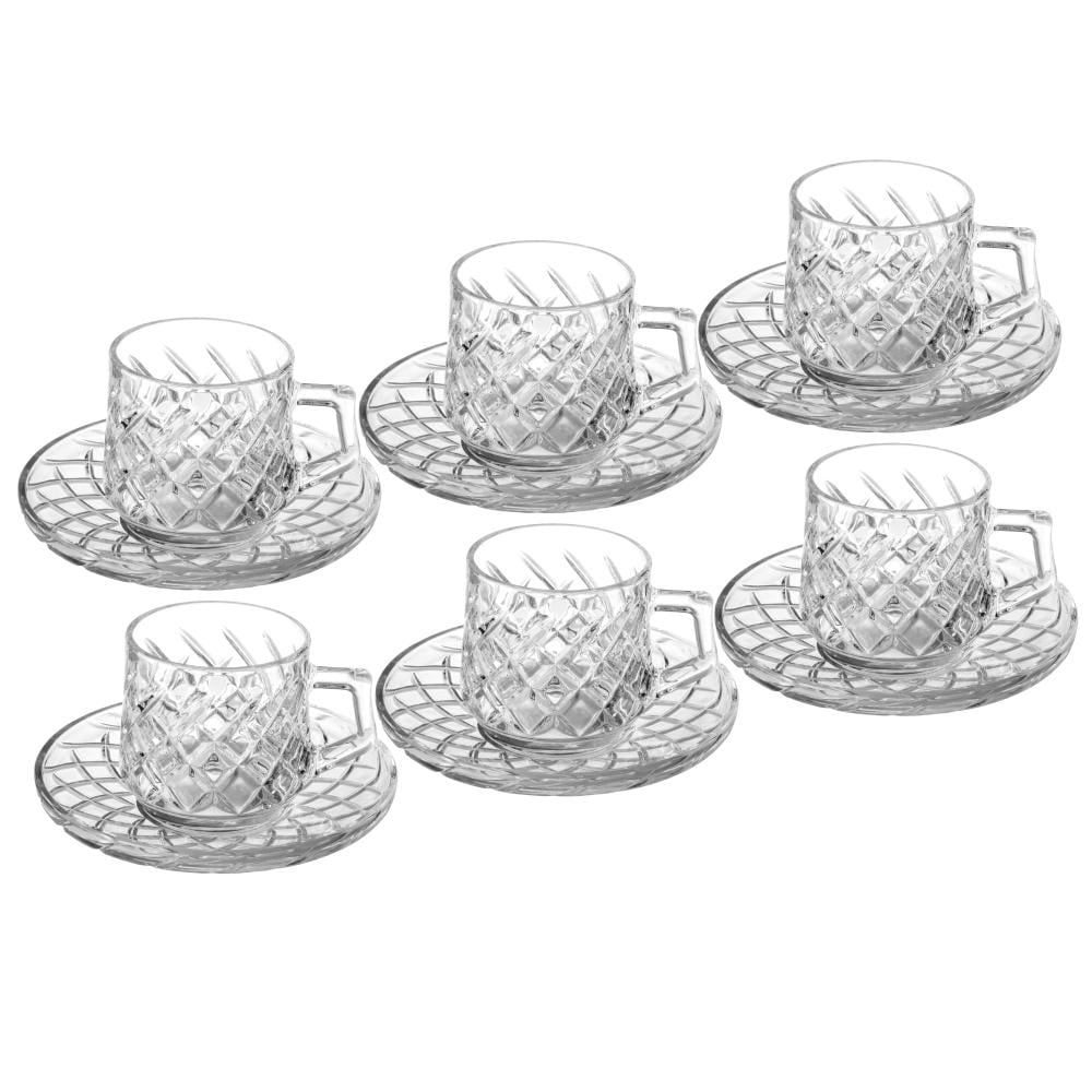 طقم اكواب شاي زجاج محفور بتصميم انيق ومميز 6 اشخاص 12 قطعة 185 مل