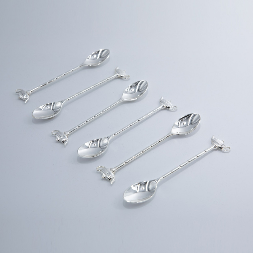 -طقم ملاعق صغيرة مكون من 6 ملاعق فضي