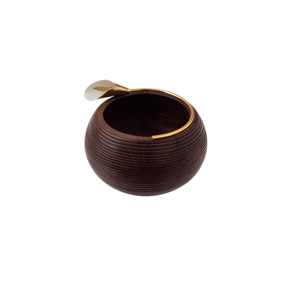 زبدية تقديم خشب هندي بروش وردة ذهبي