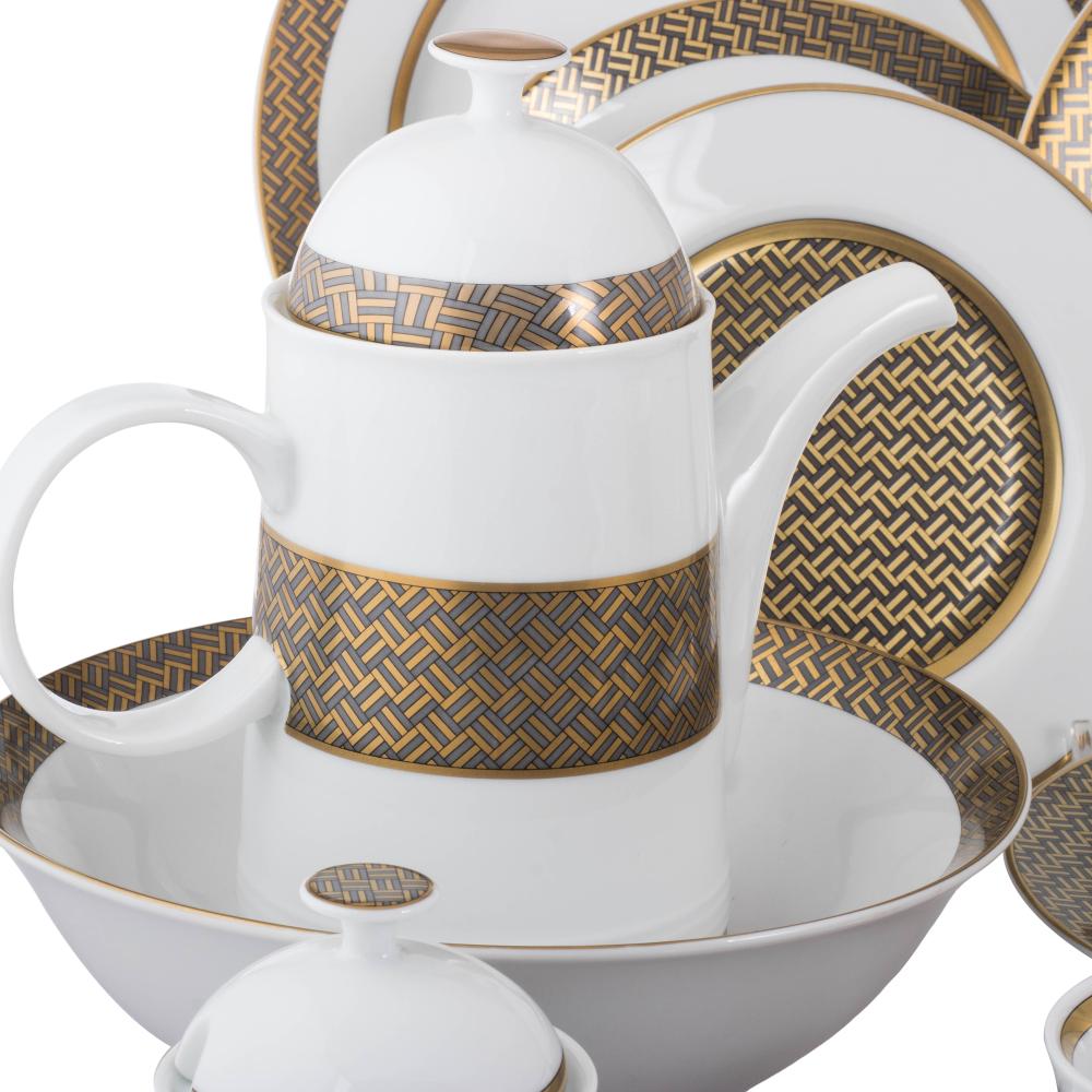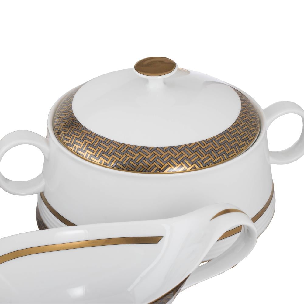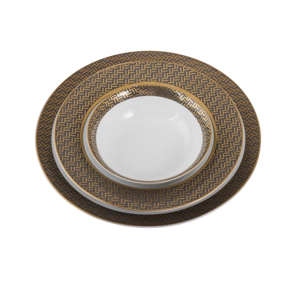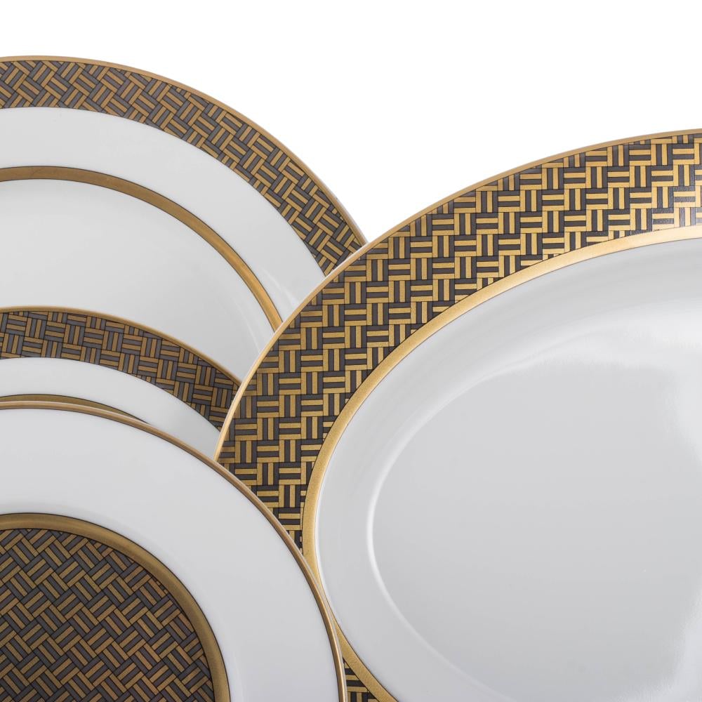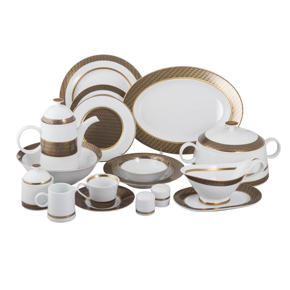 طقم عشاء بورسلان فاخر 107 قطعة بنقشة كاروهات ناعمة 12 شخص