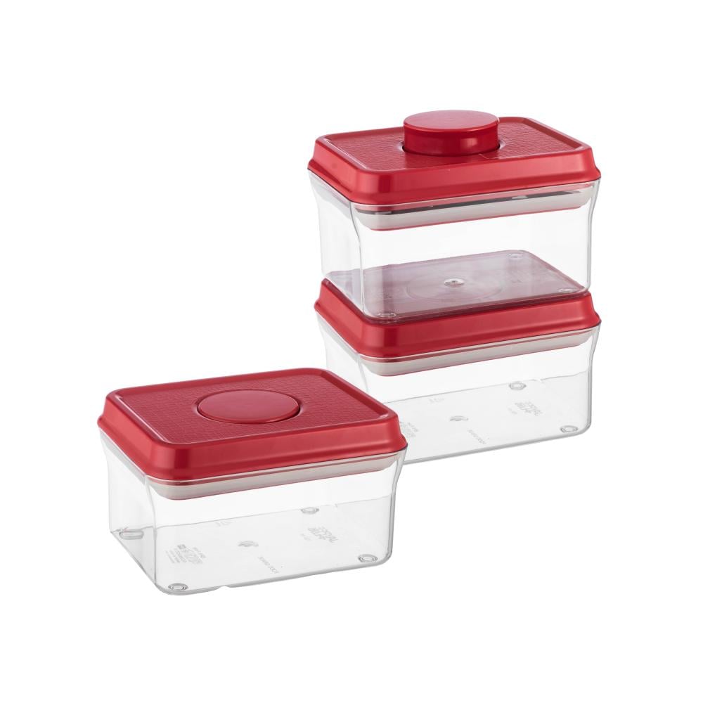 طقم حافظات بلاستيك متعدد الاستخدام 3 قطعة بغطاء لون احمر سعة 750 مل للقطعة