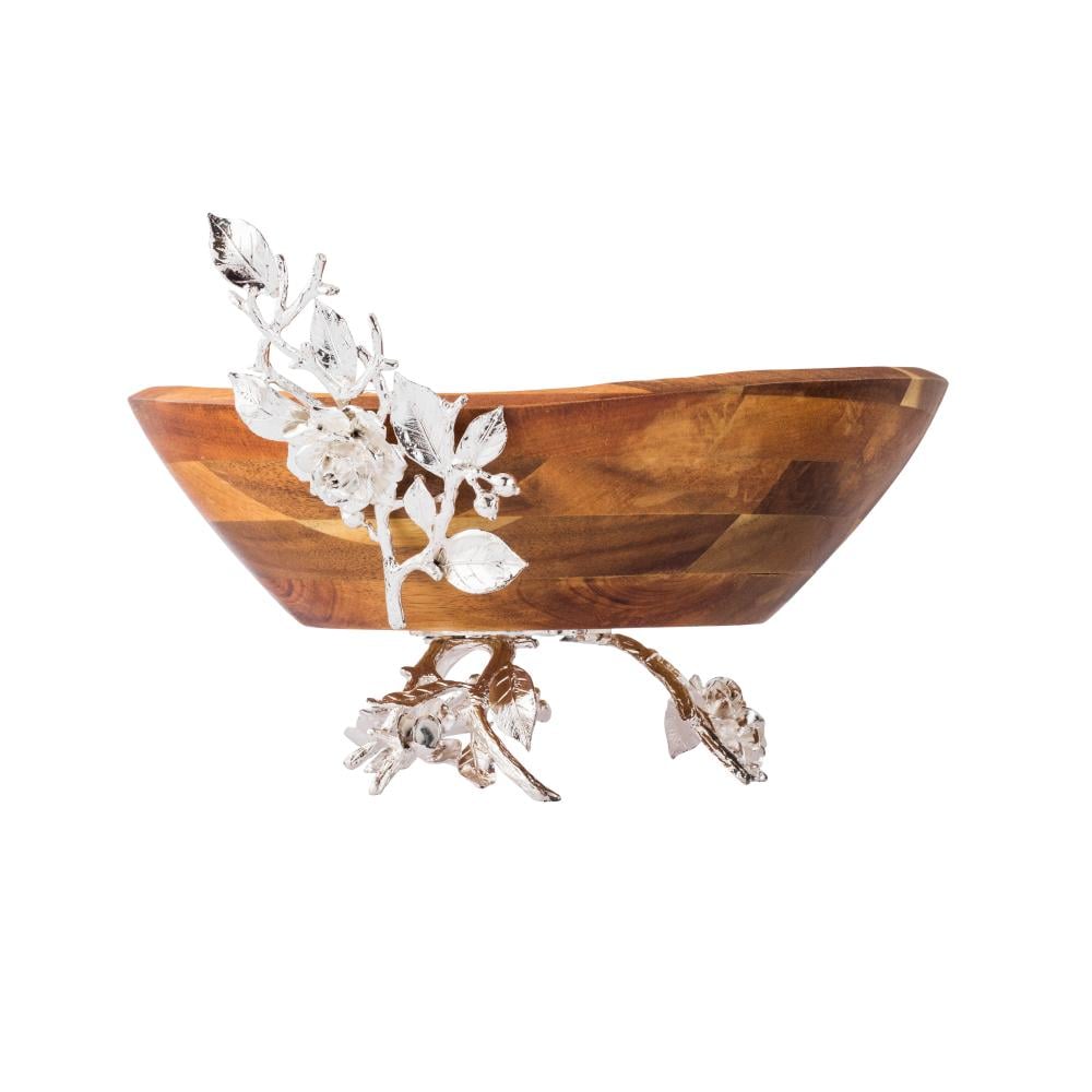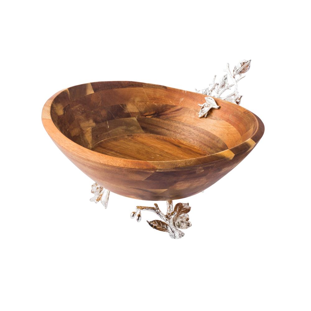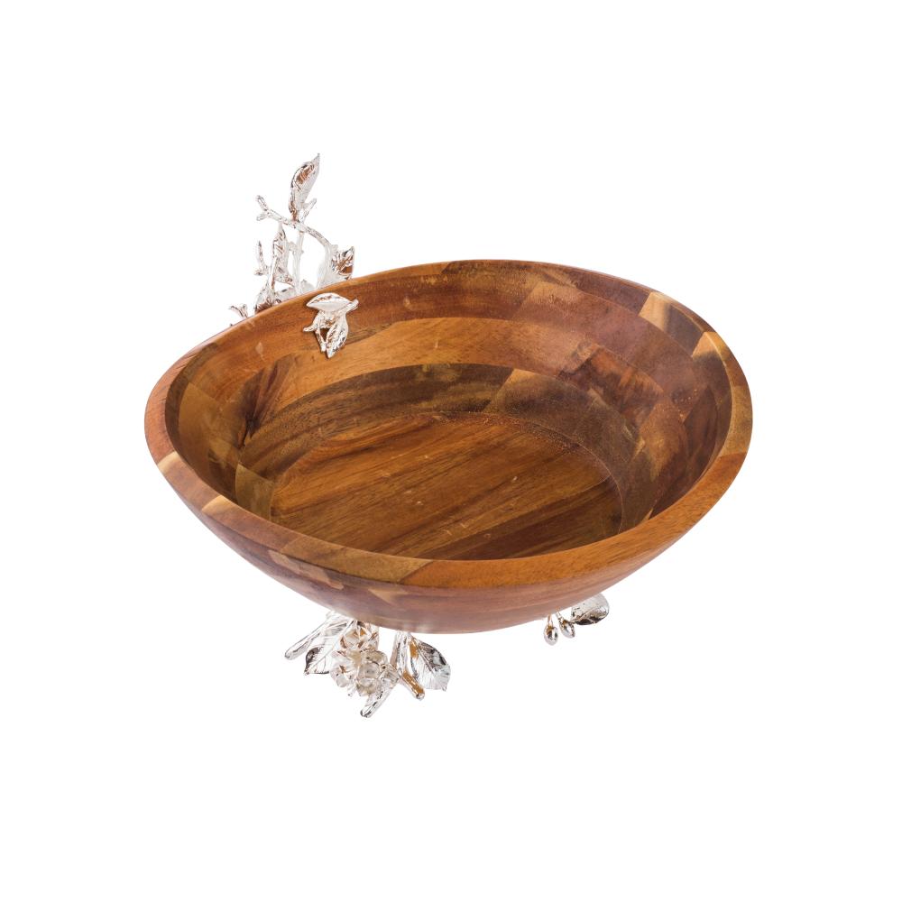 صحن حلويات خشب هندي بقاعدة معدن فضي
