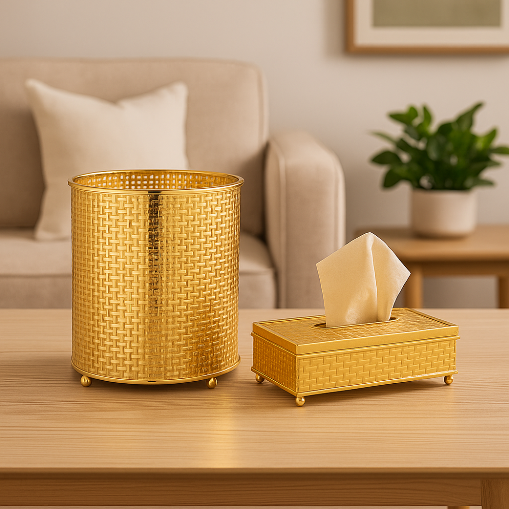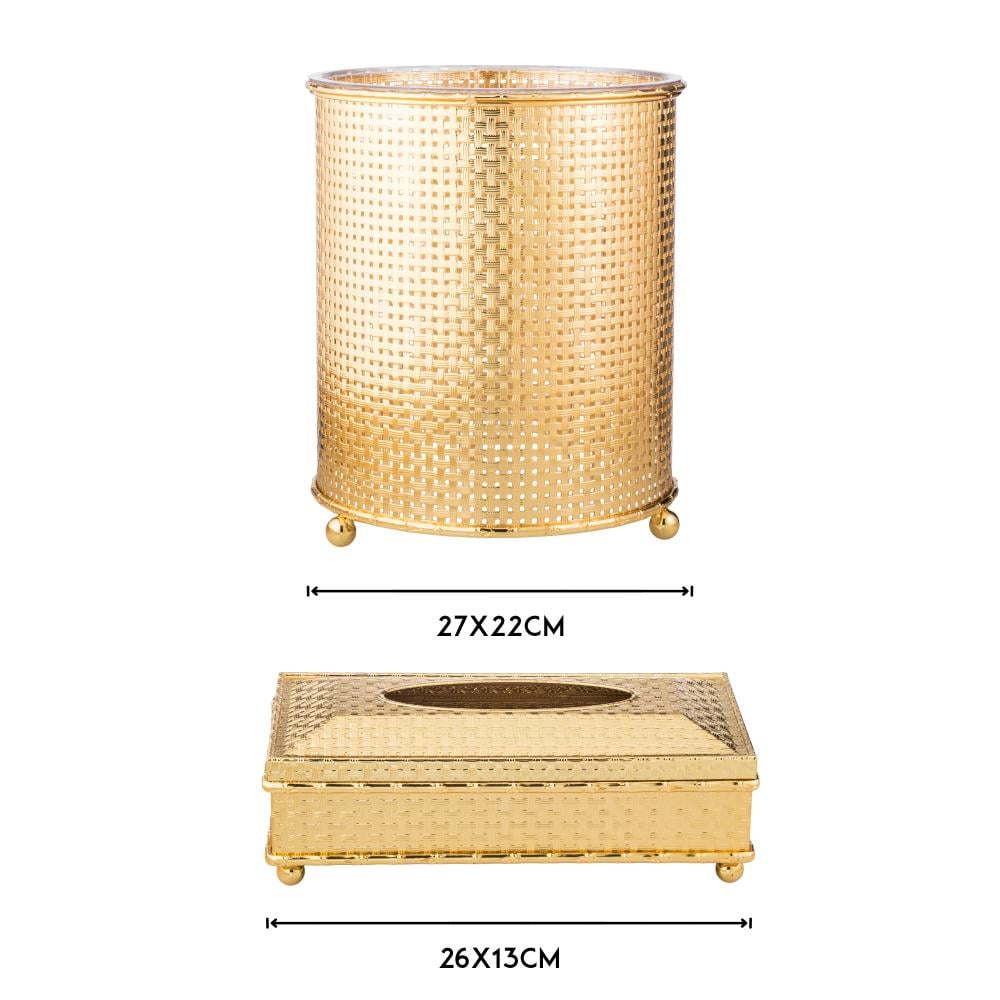 🩵 سلة ومنديل معدن ذهبي شبك🌟 فخامة تضيء المكان!