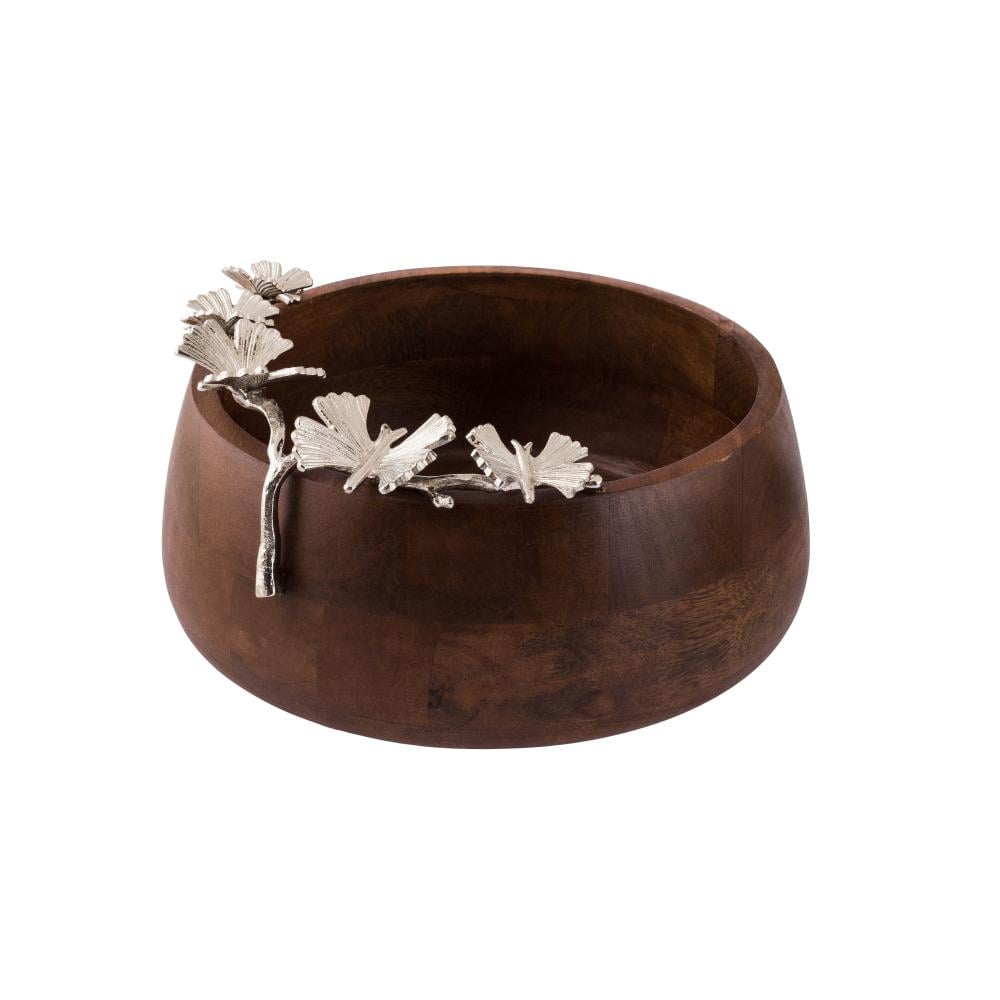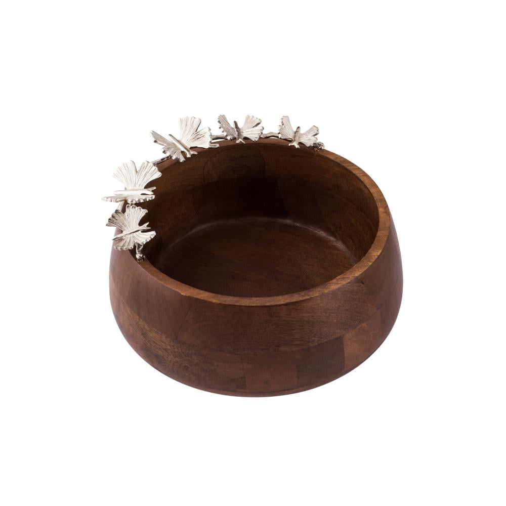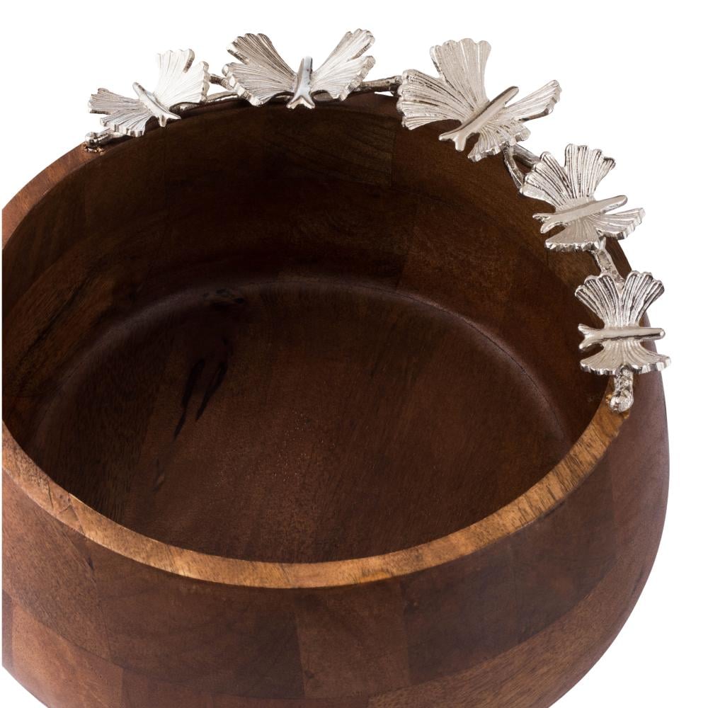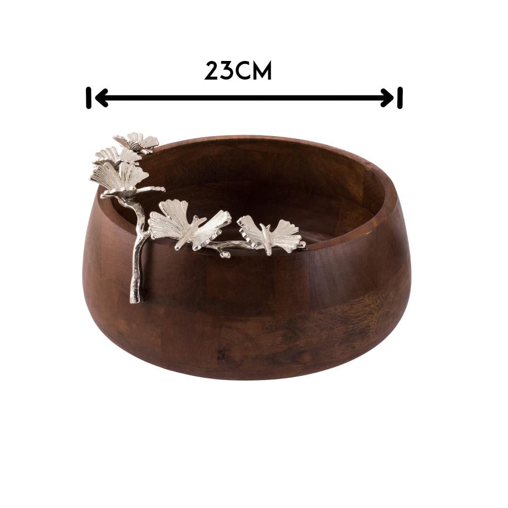 زبدية تقديم خشب هندي بديكور فراشات فضي