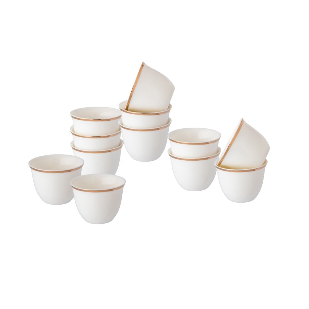 فناجين قهوة سعودي بورسلان ابيض وذهبي 12 قطعة 90 مل