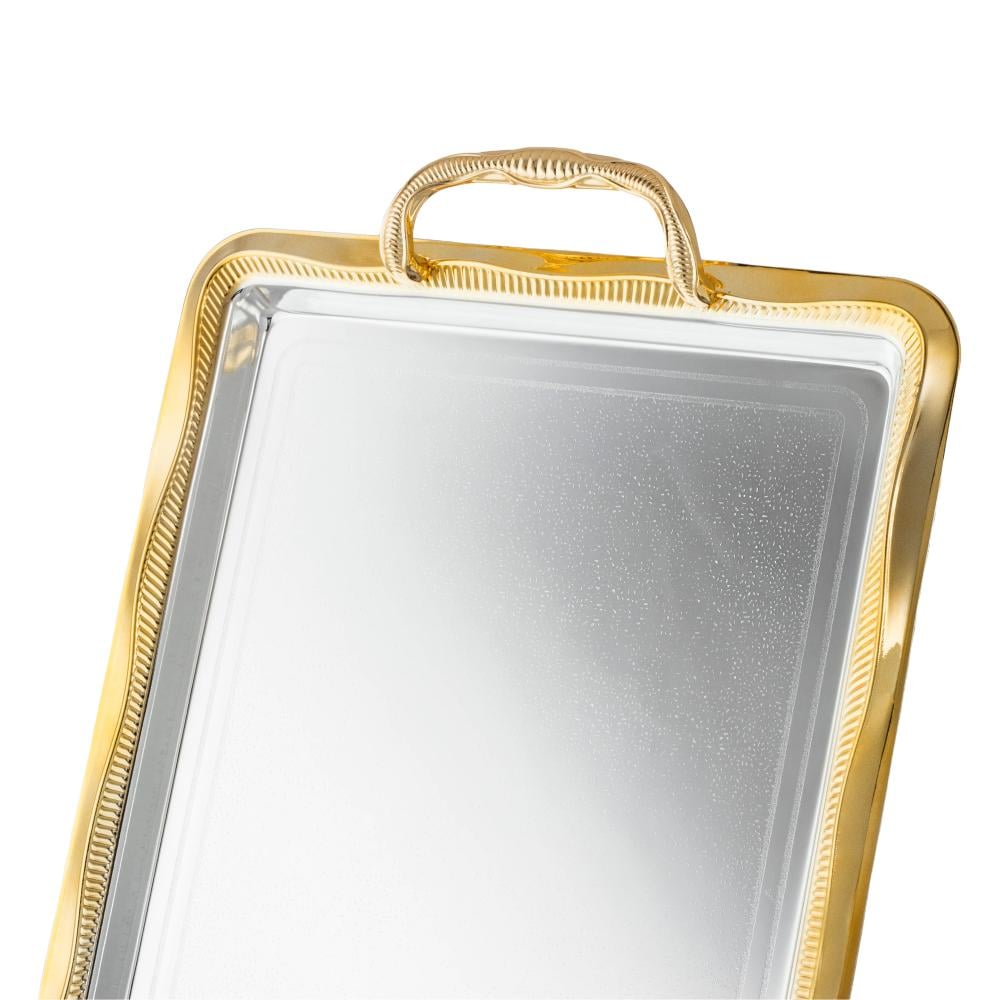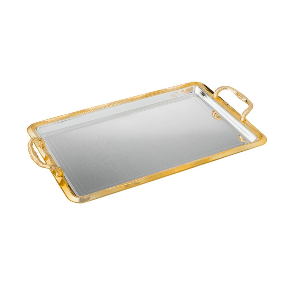 طقم صواني امواج معدن مستطيل مزخرف فضي و ذهبي 3 قطعة