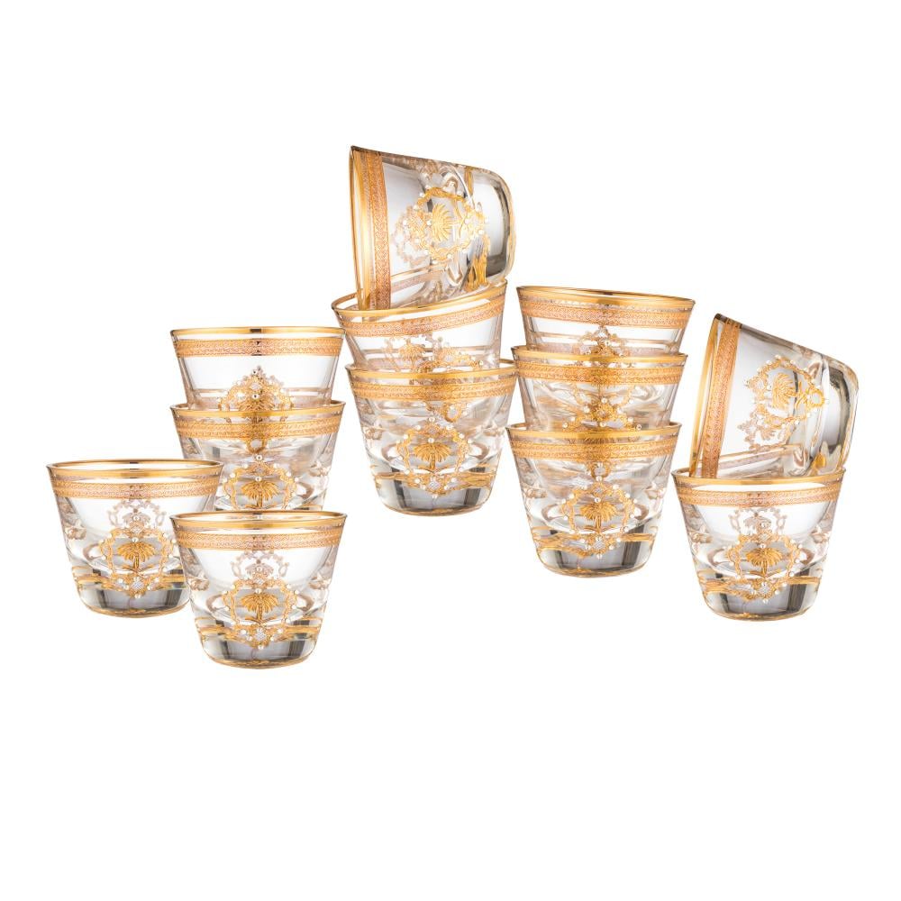 تميّزي في ضيافتك مع مجموعة فناجين القهوة السعودية الزجاجية الفاخرة بزخارف ذهبية راقية ولمسة تصميم شرقي كلاسيكي. تعكس الأناقة في كل تفصيلة، وتضفي طابعًا مميزًا على جلسات القهوة والمناسبات الخاصة.
