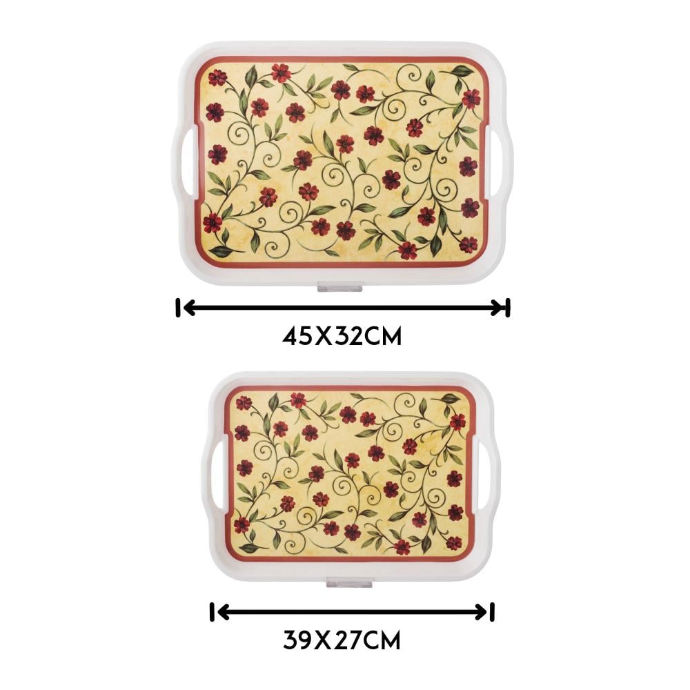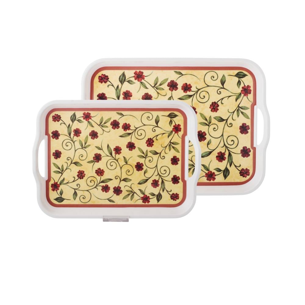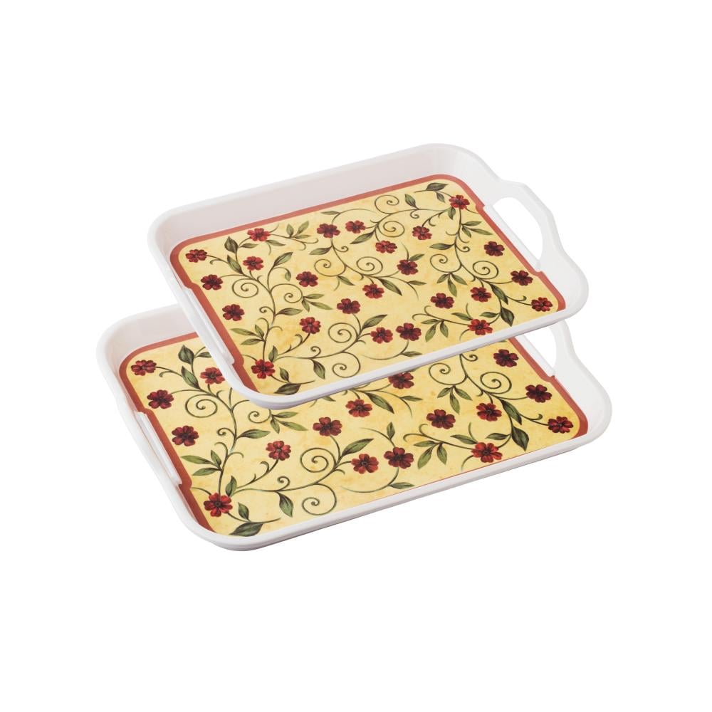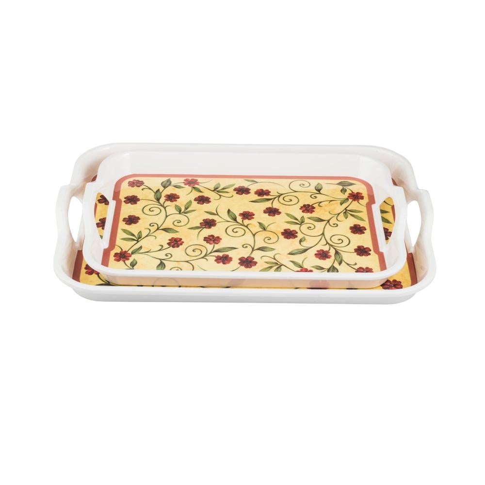 طقم صواني ميلامين مستطيل 2 قطعة ورد جوري