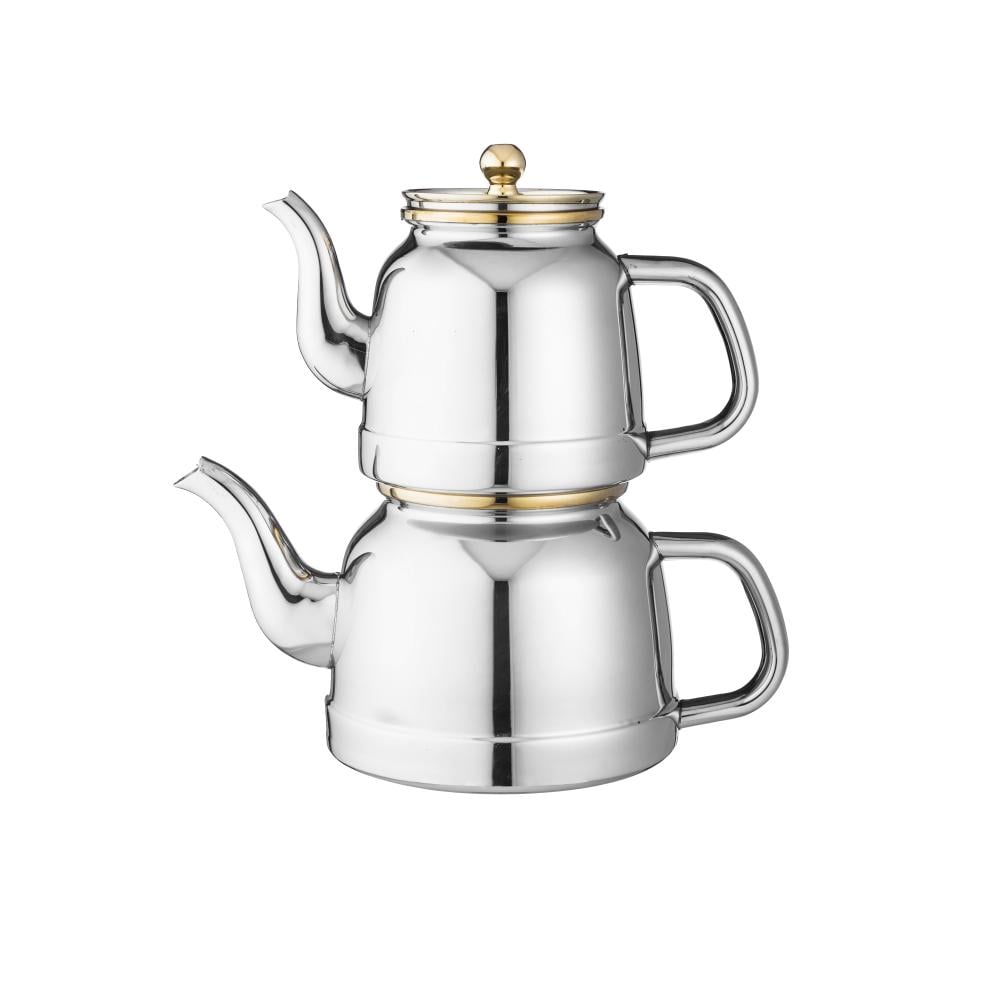 السيف طقم براريد شاي وسموار استيل وذهبي اكليل 2 لتر , 1.2 لتر