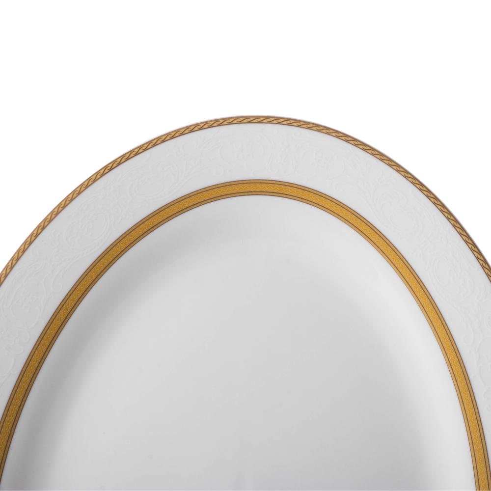 سرفيس رز بورسلان ابيض وذهبي بنقشات ناعمة بيضاوي مقاس 34*23 سم 1 قطعة