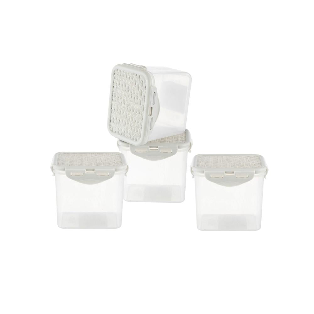 طقم حافظات بلاستيك متعدد الاستخدام 4 قطعة بغطاء لون ابيض سعة 850 مل للقطعة