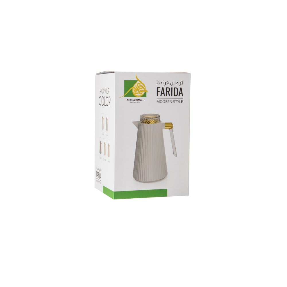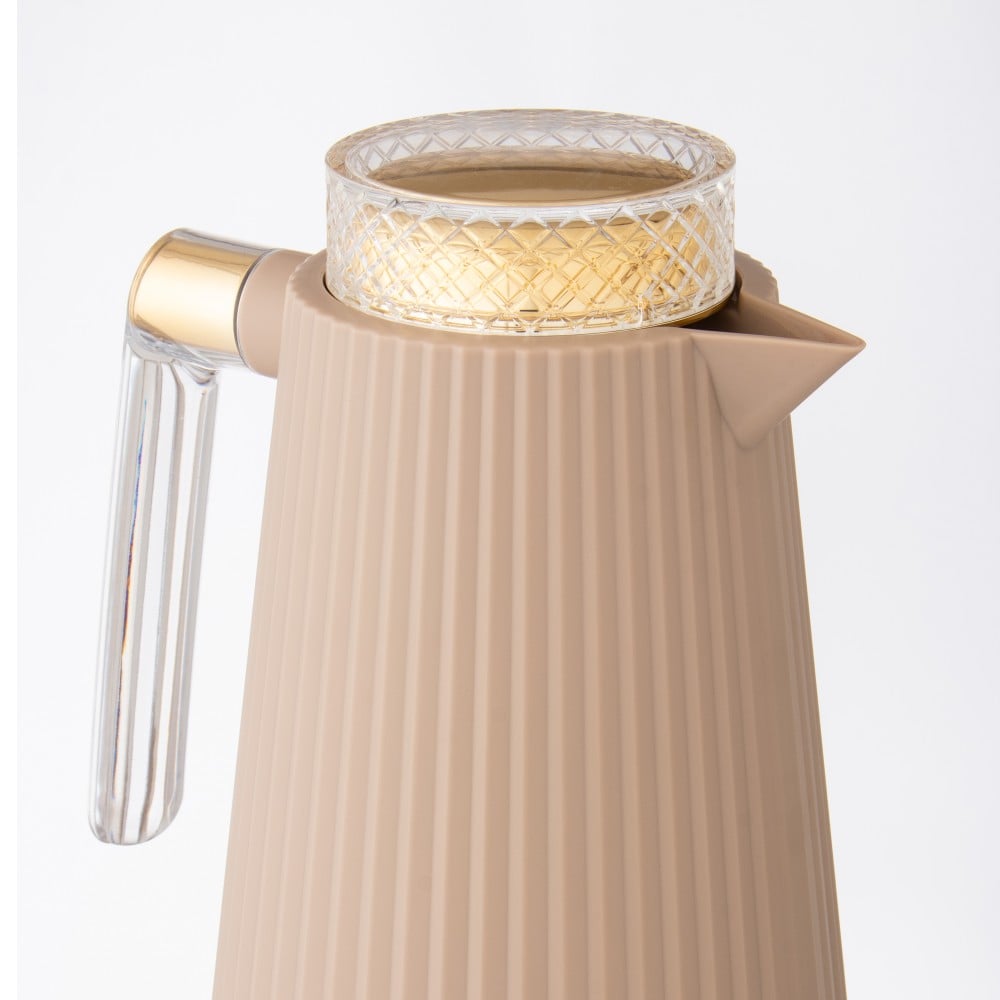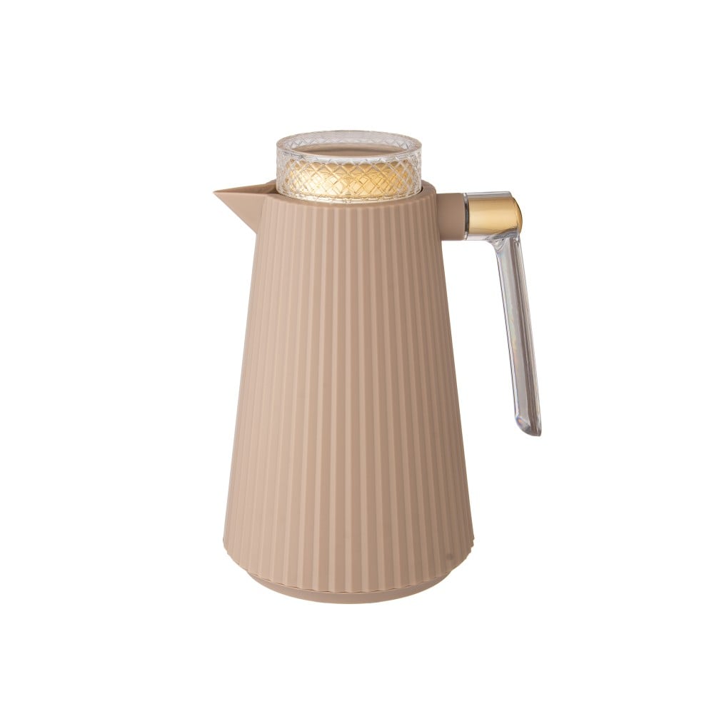 ترمس شاي وقهوة بيج غامق ذهبي يد اكريلك 1 لتر