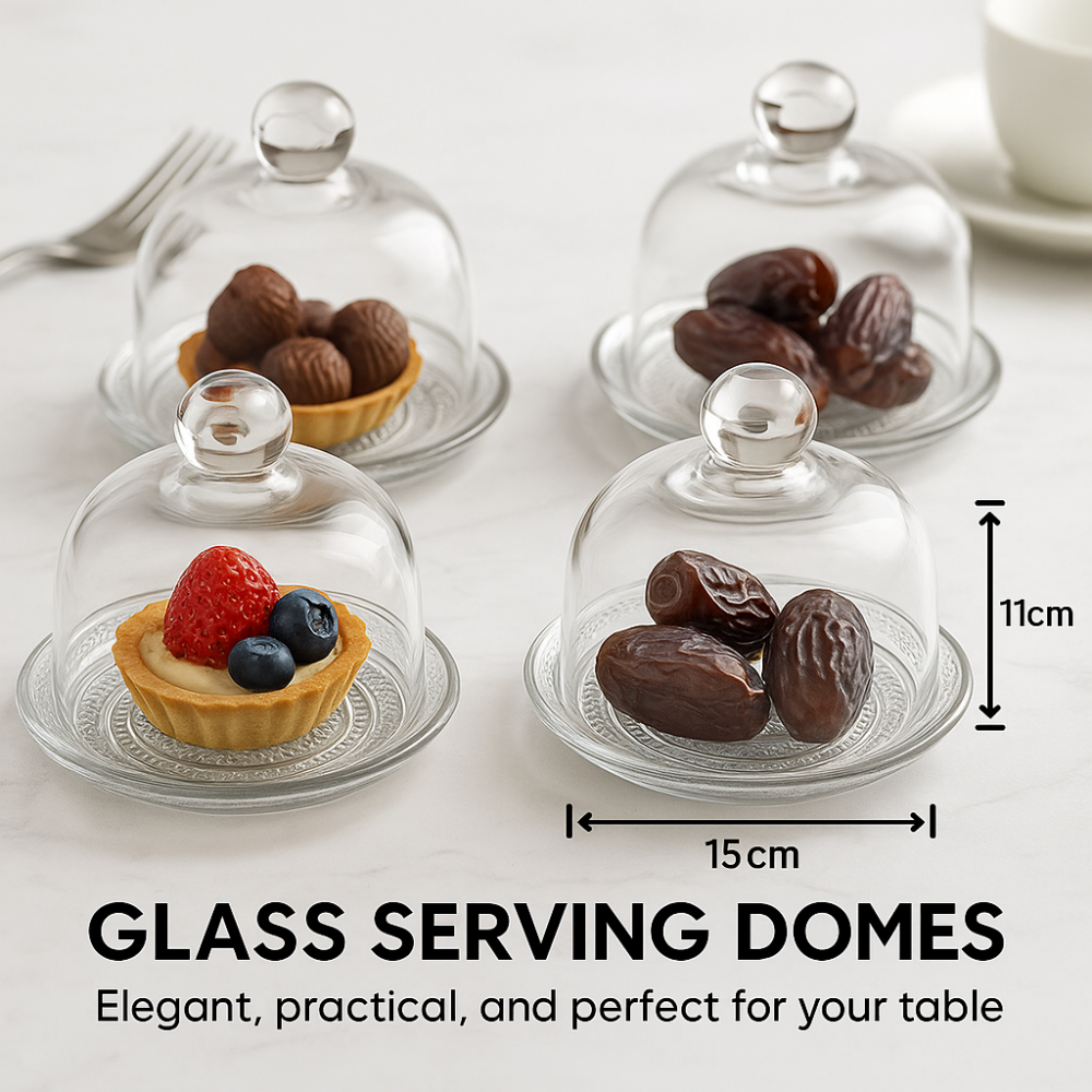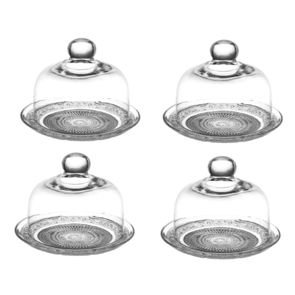 طقم صحون كيك كونيا زجاج فاخر بغطاء متحرك ميني مقاس 15 سم 4 قطع