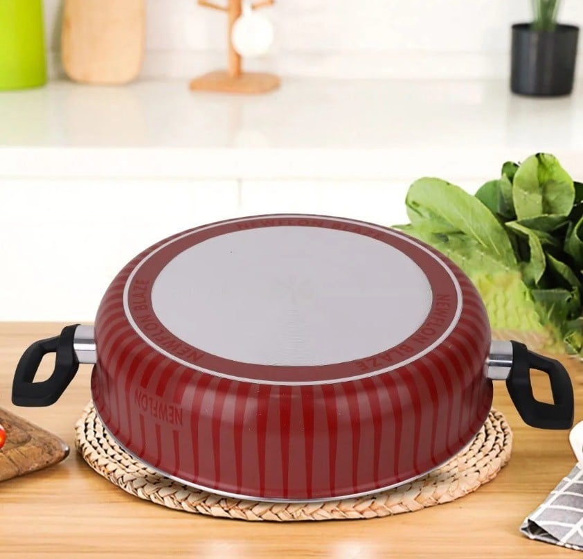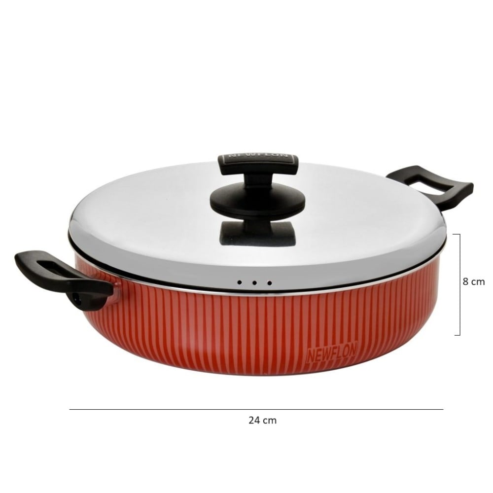 مقلاة نيوفلون بيدين جانبين وغطاء مقاس 24 سم