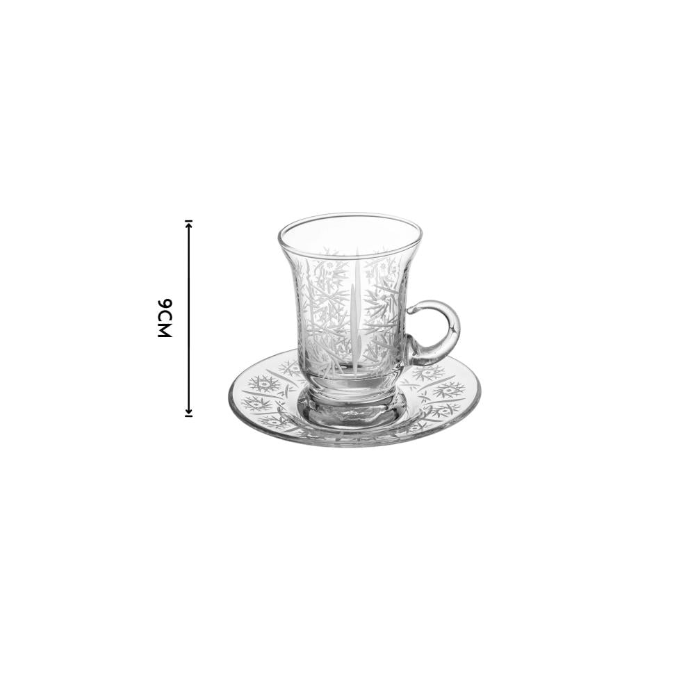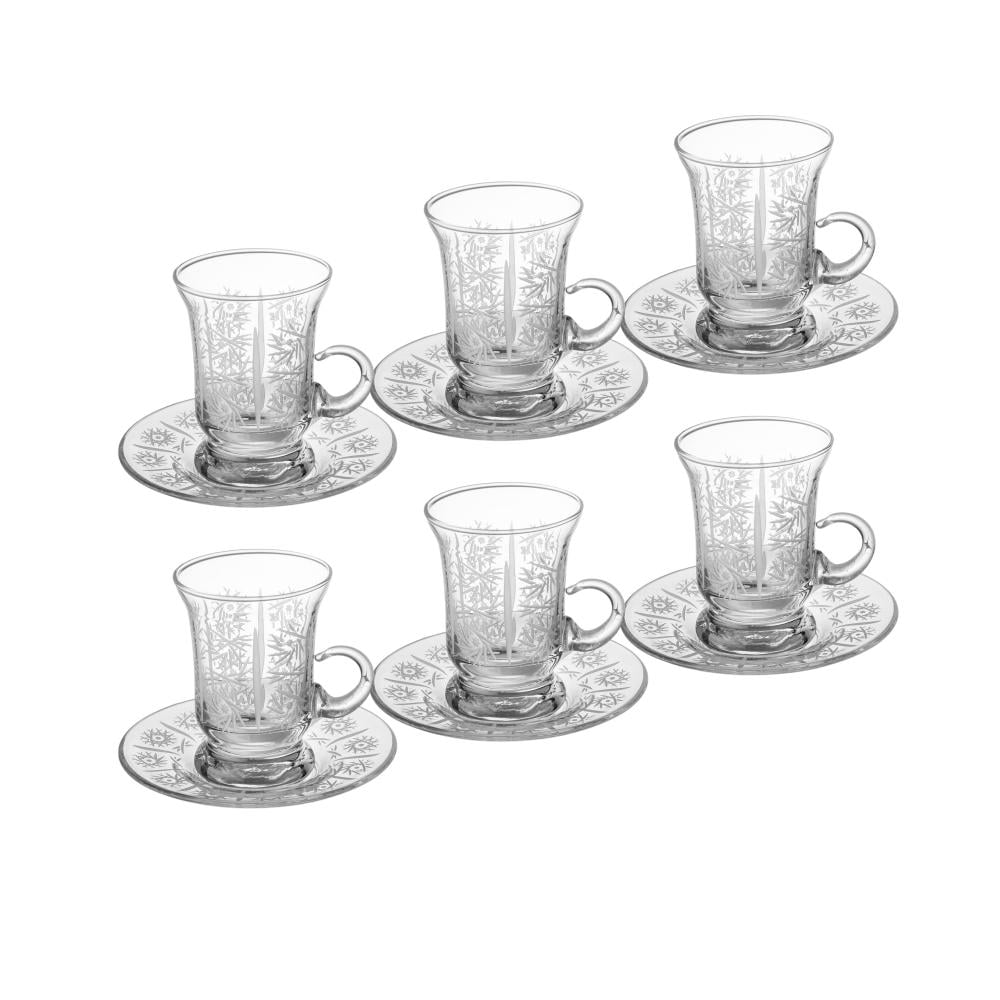 طقم فناجين شاي زجاج تركي حفر مزخرف 12 قطعة 6 اشخاص