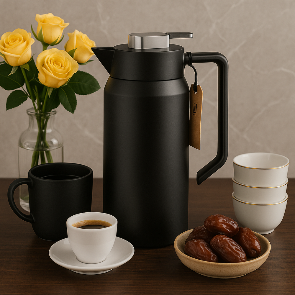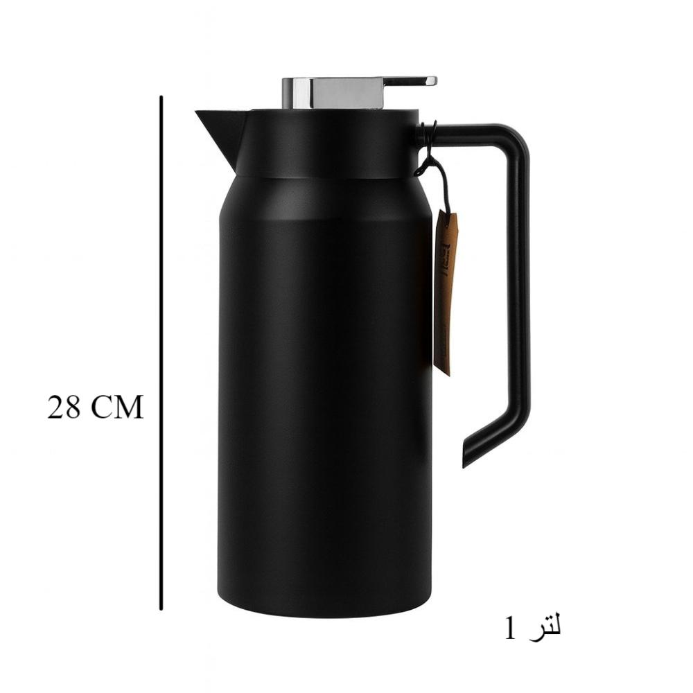ترمس شاي وقهوة من شركة هوست 1 لتر اسود سادة وفضي داخل زجاج