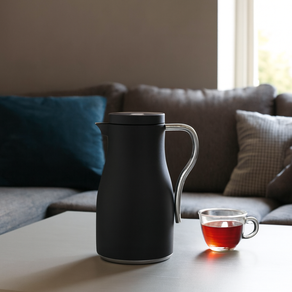 هوست ترمس شاي وقهوة بروز 1 لتر لون رصاصي يد فضي