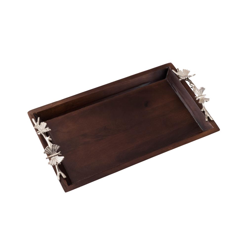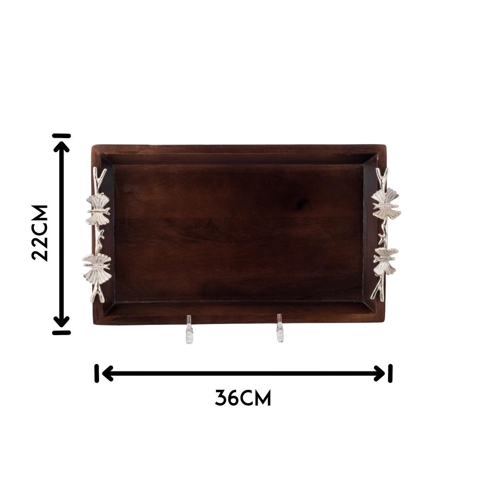 صينية تقديم خشب هندي بحامل ديكور فراشات فضي